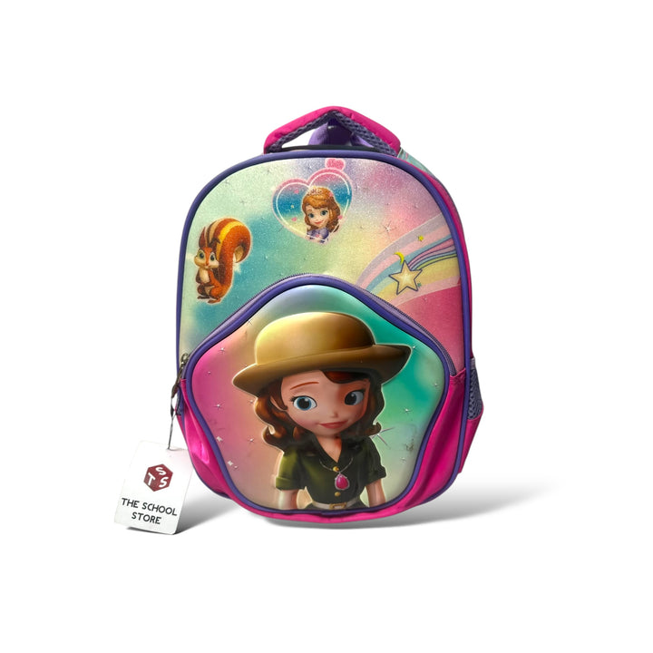 This 12 Inch Sofia School Bag is made of premium quality and is water resistant, with 2 zip and 2 side water bottle holders. The materials used are of premium quality, with a durable chain and breathable back and shoulder straps.