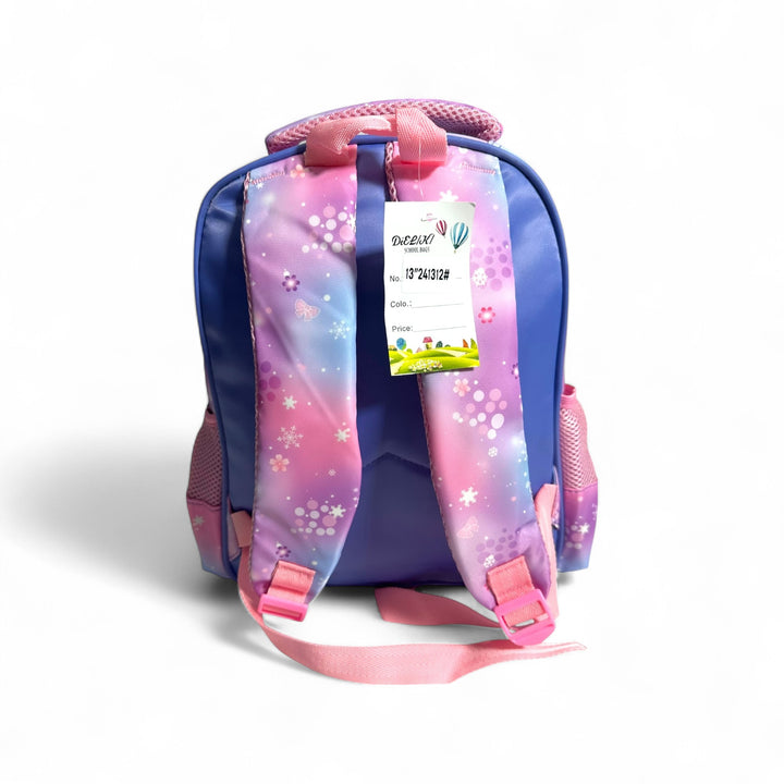 Our 13-inch school bag for girls Designed with a water-resistant material, this bag features 2 main zips for easy organization. The simple back and breathable shoulders straps for add comfort to this stylish and functional bag.