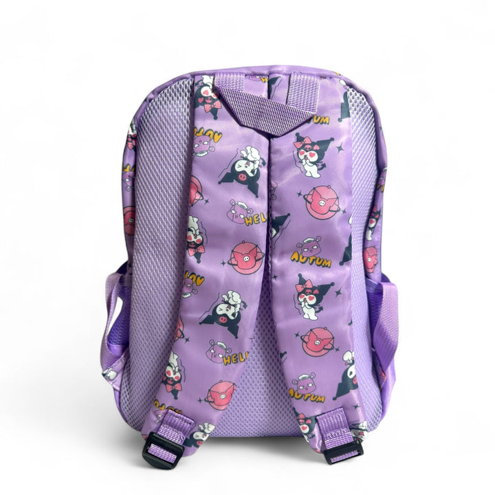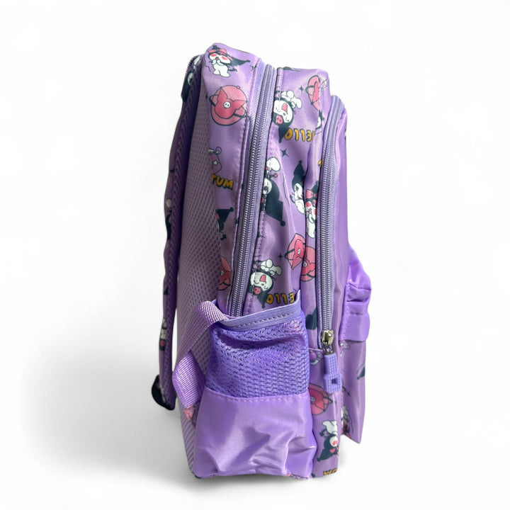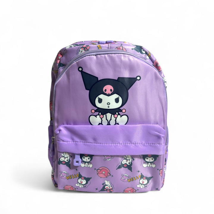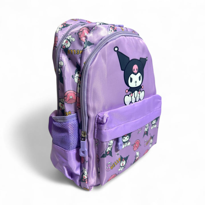 This 14 inch kuromi School Bag is the ultimate choice for girls Made with premium quality materials, this bag is water resistant and features breathable back and shoulder straps for comfortable wear. With 2 main zips and 1 front zip and 2 water bottle holders, it's perfect for carrying all your school essentials.