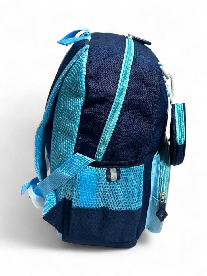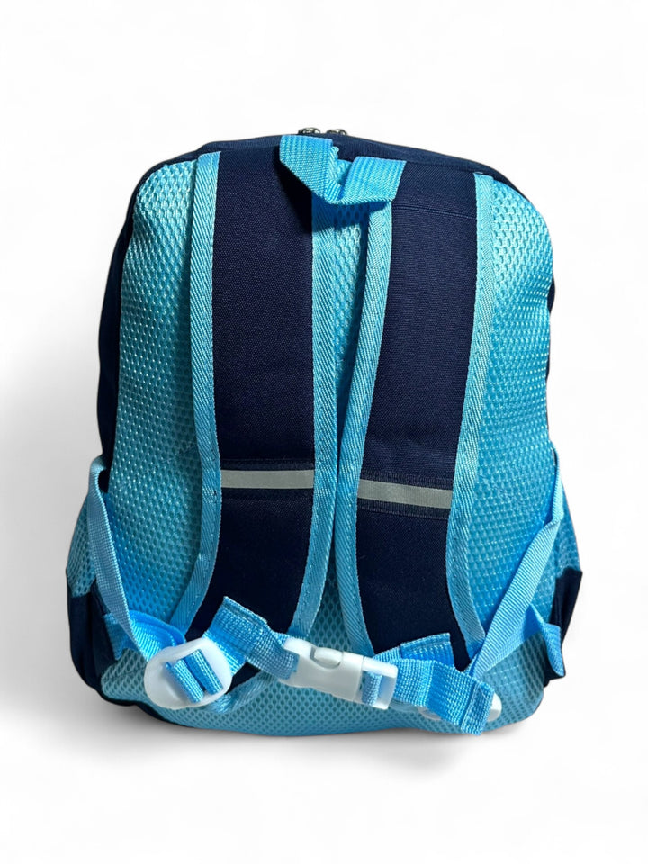 This 14 inch pow petrol school Bag is the ultimate choice for boys Made with premium quality materials, this bag is water resistant and features breathable back and shoulder straps for comfortable wear. With 1 main zip 1 front round pocket and 1 front zip and 2 water bottle holders, it's perfect for carrying all your school essentials.