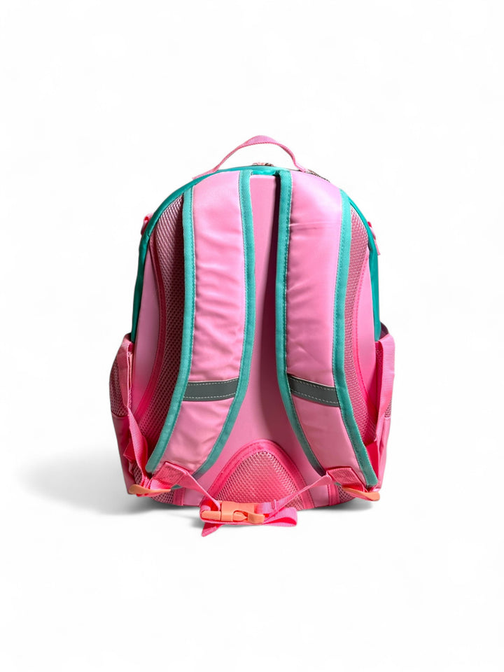 Experience the ultimate in style and quality with our 15 inch premium school bag for girls Designed with a water-resistant material, this bag features 1 main zip, 1 round zip, and 1 front zip for easy organization. The breathable back and shoulder straps add comfort to this stylish and functional bag
