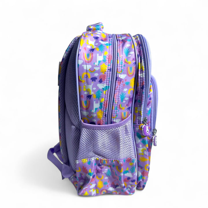 Our 16-inch school bag for girls Designed with a water-resistant material, this bag features 2 main zips and 2 front zips for easy organization. The breathable back and shoulders straps for add comfort to this stylish and functional bag.