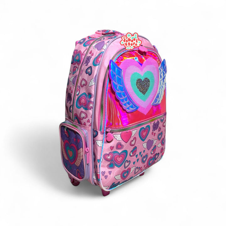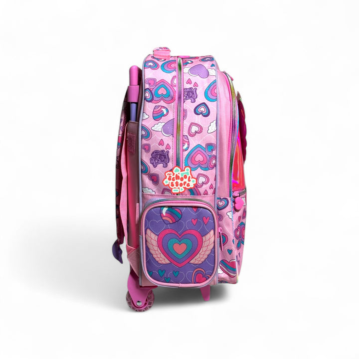 17 Inch 2 Piece Heart Trolley School Bag By Vest for Grade 1 Till Grade 4 Girls