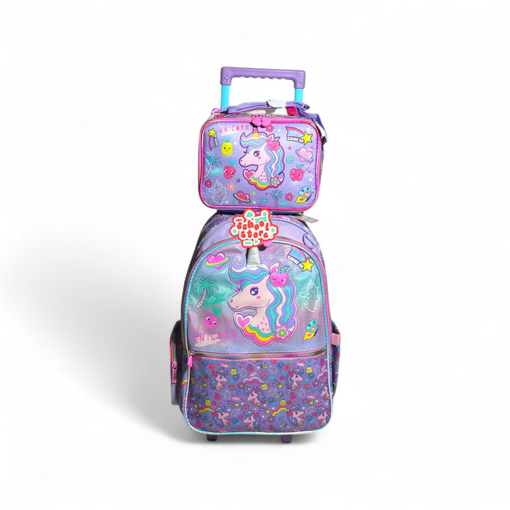 17 Inch 2 Piece Unicorn Trolley School Bag By Vest for Grade 1 Till Grade 4 Girls