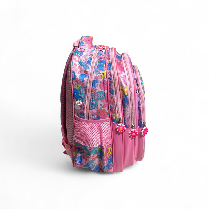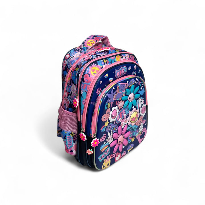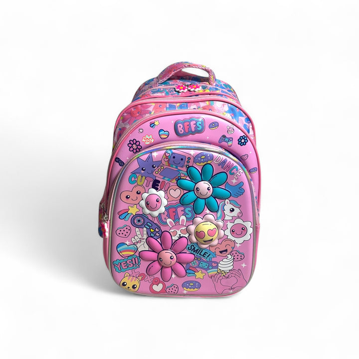 17 Inch 3D Pink Floral School Bag For Grade 1 Till Grade 3 Girls