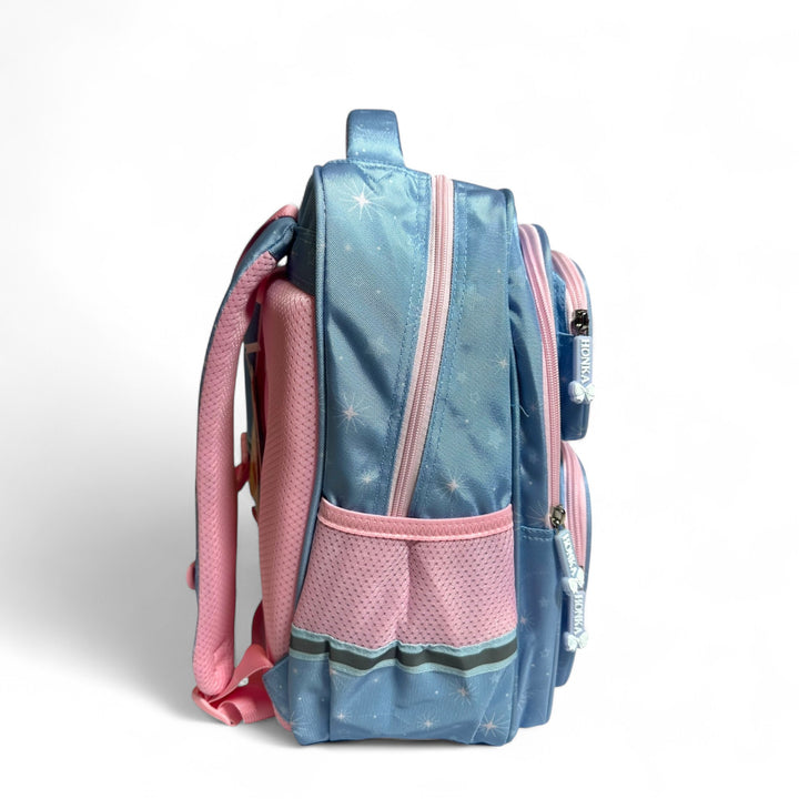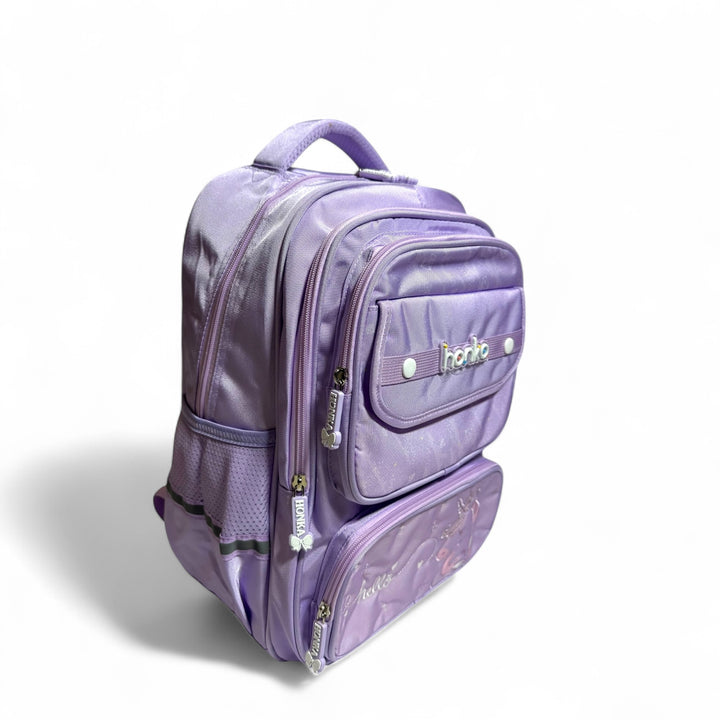 This 17 Inch unicorn School Bag is the ultimate choice for girls Made with premium quality materials, this bag is water resistant and features breathable back and shoulder straps for comfortable wear. With 2 main zips and 2 front zips and 2 water bottle holders, it's perfect for carrying all your school essentials.