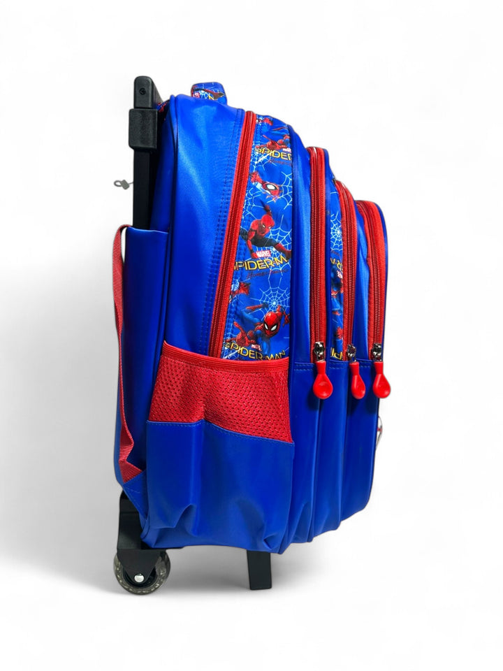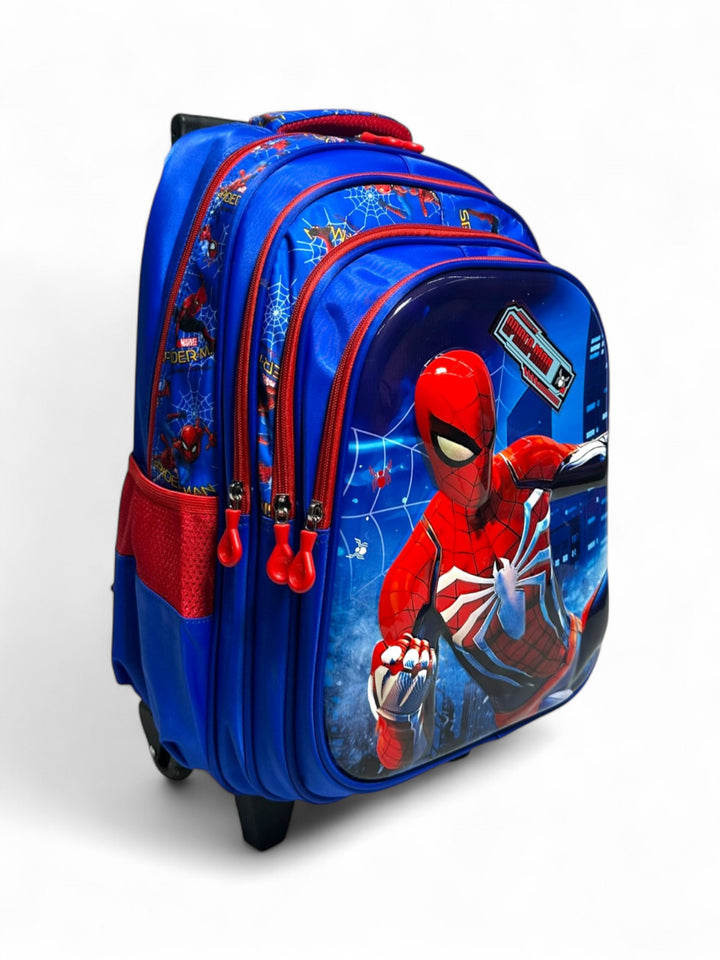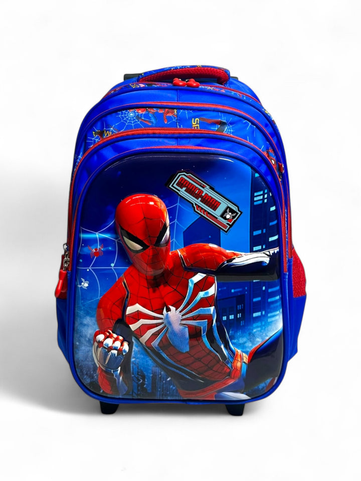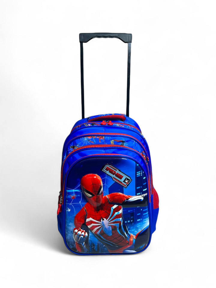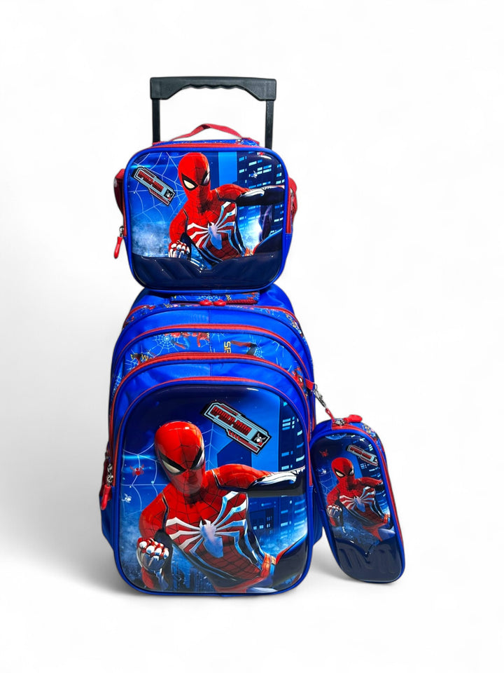 Experience the ultimate in style, quality, and functionality with the 18-inch 3D spiderman 3-piece trolley bag This premium product features 3 main zips and 1 front zip 2 breathable shoulder straps, and 2 side water bottle holders, making it the perfect companion for any school journey. The set includes a spacious school bag, a versatile launch bag, and a convenient pencil pouch - all designed to elevate your daily routine. With water-resistant material and a premium look, this school bag is a must-have for any stylish and practical student.