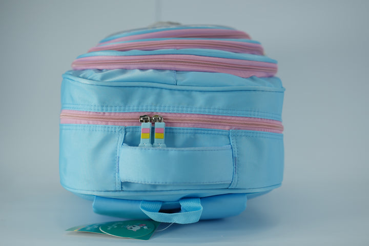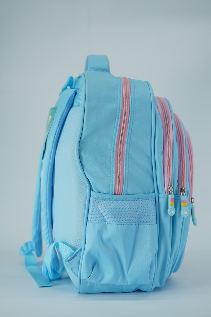Experience the ultimate in style and quality with our 18-inch premium school bag for girls Designed with a water-resistant material, this bag features 2 main zip 2 front zip for easy organization. The breathable back and shoulder straps add comfort to this stylish and functional bag.