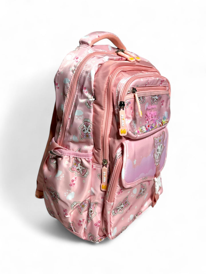 Experience the ultimate in style and quality with our 18 inch premium school bag for girls. Designed with a water-resistant material, this bag features 2 main zips and 3 front zips and 1 back zip for easy organization. The breathable shoulder straps add comfort to this stylish and functional bag.