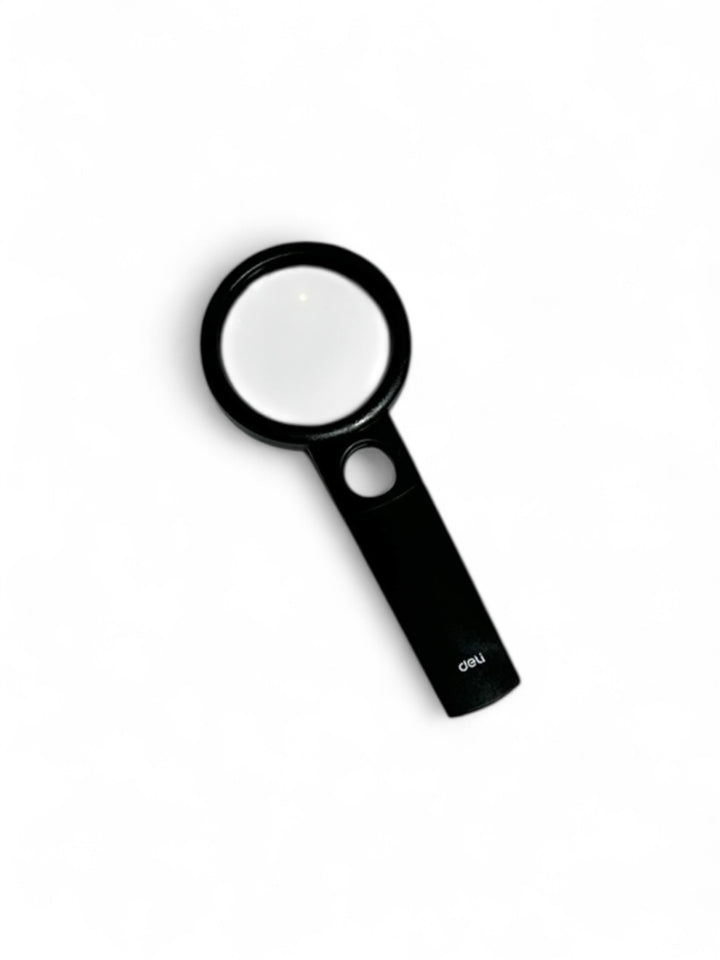 This is a Deli classic Magnifier Glass, model 9091 with 2.5x magnification It features a 55mm diameter lens It's designed for tasks requiring magnification, such as reading small text or examining intricate objects. The magnifier is described as having a distortion-free lens for clear viewing. It's a durable and reliable tool suitable for professionals and hobbyists.