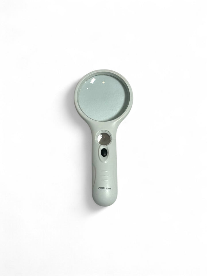 This is a Deli pro Magnifier Glass, model 9090 with 2.5x magnification It features a 70mm diameter lens It's designed for tasks requiring magnification, such as reading small text or examining intricate objects. The magnifier is described as having a distortion-free lens for clear viewing. It's a durable and reliable tool suitable for professionals and hobbyists.