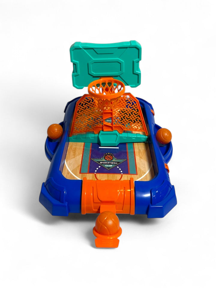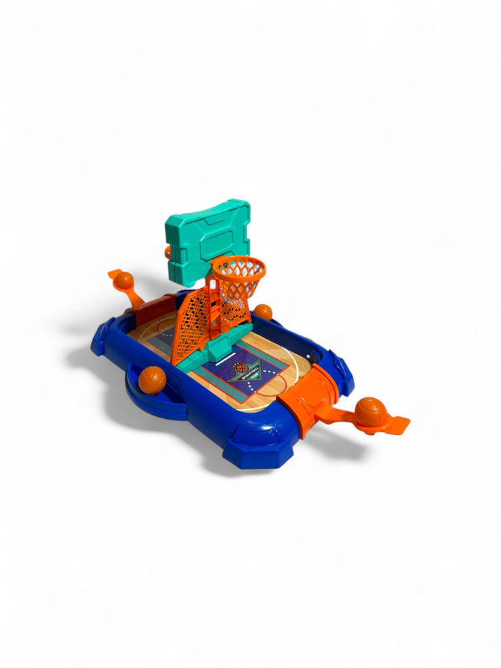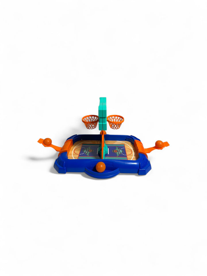 This is a 2-in-1 Basketball Game from the Board Game Series, also known as a tabletop mini basketball game It is designed for two players and is suitable for ages 4 and up. The game is compact and portable, making it easy to carry. It combines basketball and potentially other sports (like soccer in some variations) in a tabletop format. It is crafted from durable ABS plastic.
