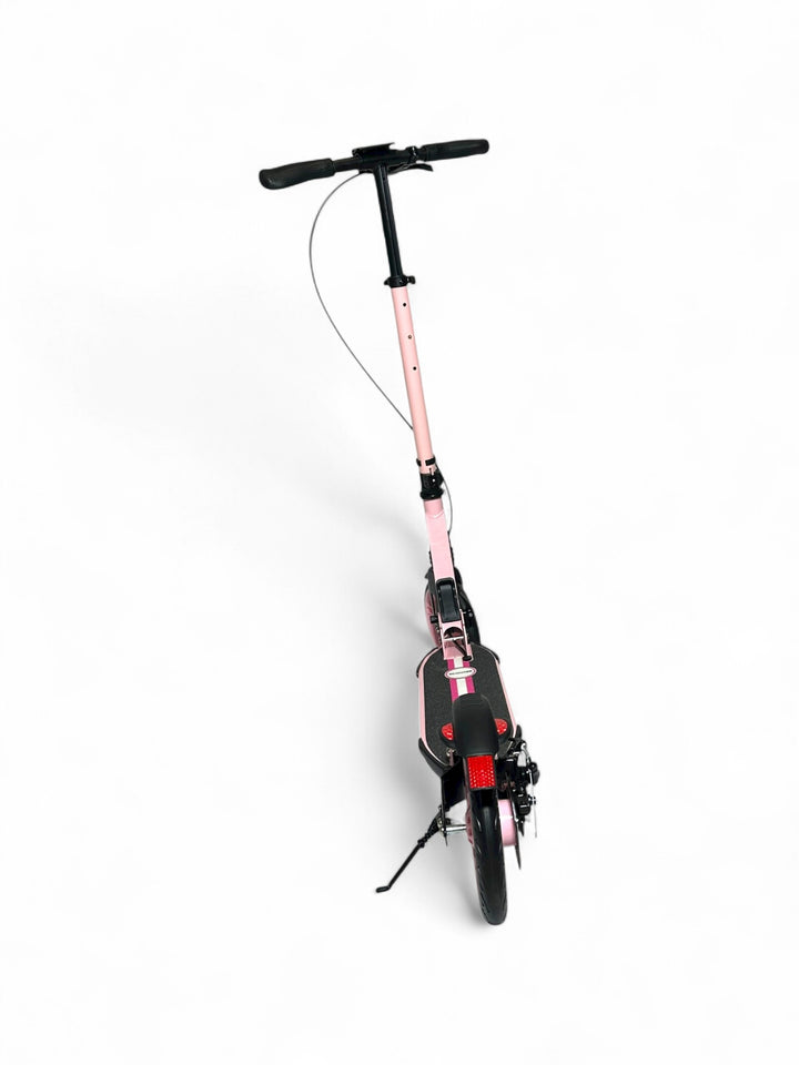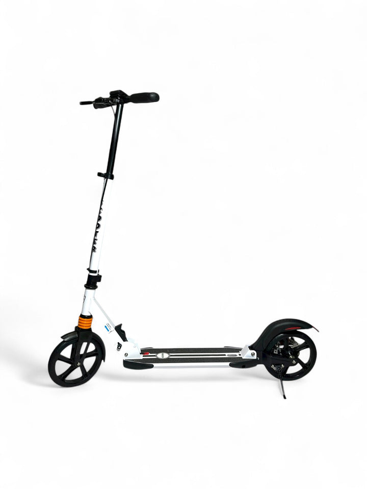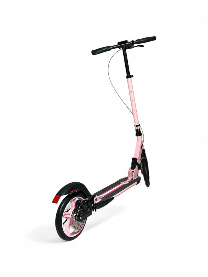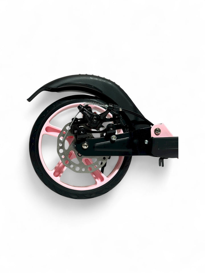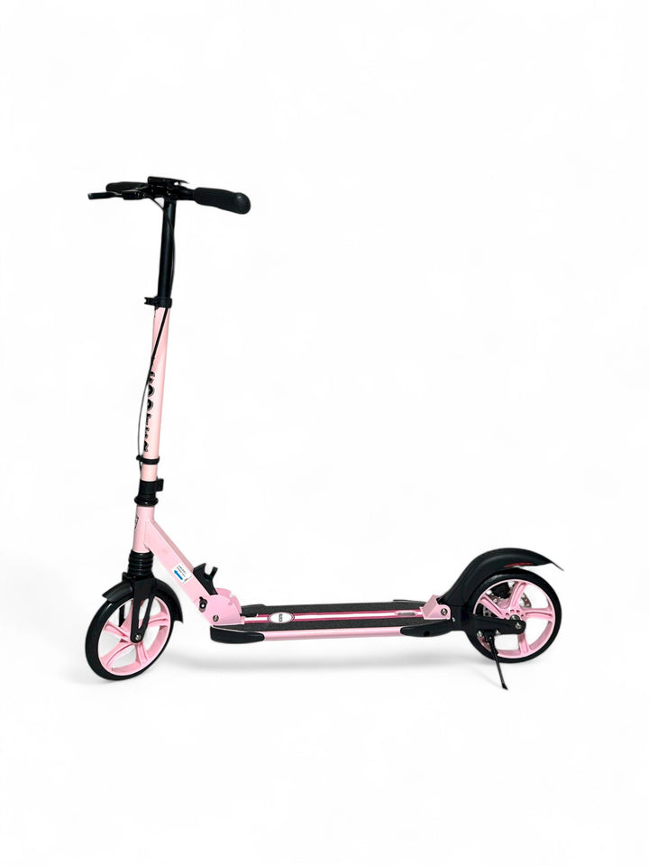 This 2 Wheels Kick Scooter is perfect for kids aged 4 and up who want smooth, comfy rides. Thanks to its big 180mm wheels, it easily glides over bumps and cracks, making every ride faster and more fun. Its sturdy metal frame is super strong yet light, plus it folds up with just one button for easy carrying and storage. The retro-style wide handlebars with rubber grips offer great control and balance, so you feel steady while scooting around. It also features an adjustable handlebar, rear foot brake, mud guards, and a handy kickstand for quick stops.