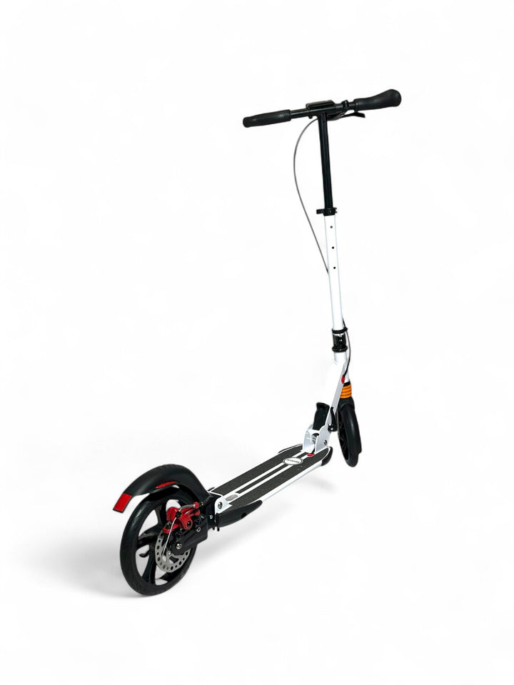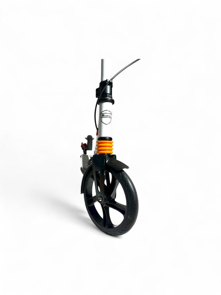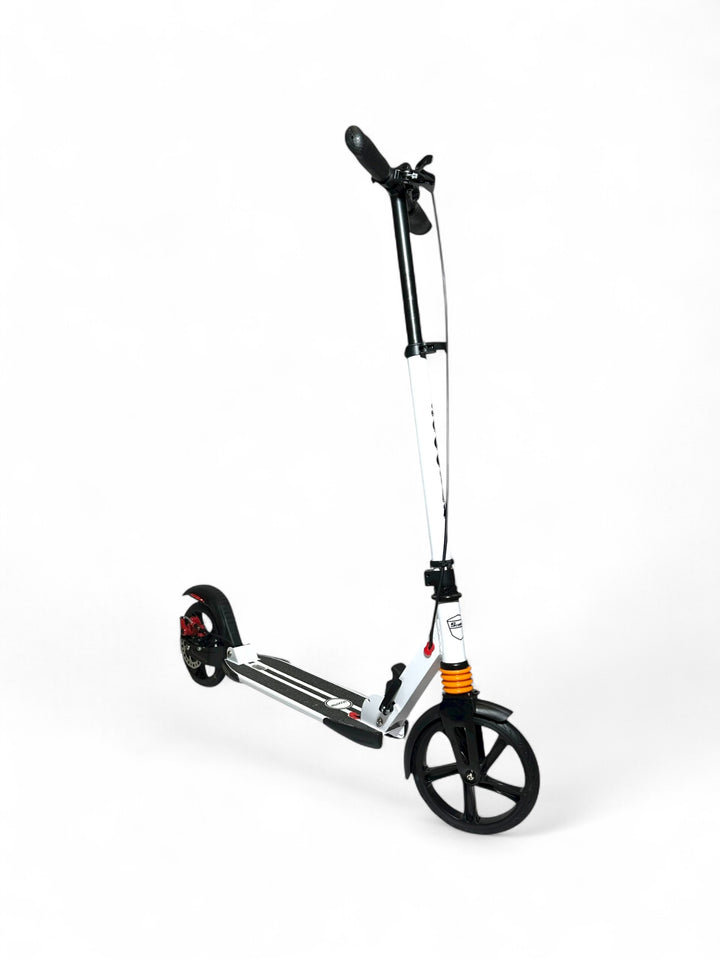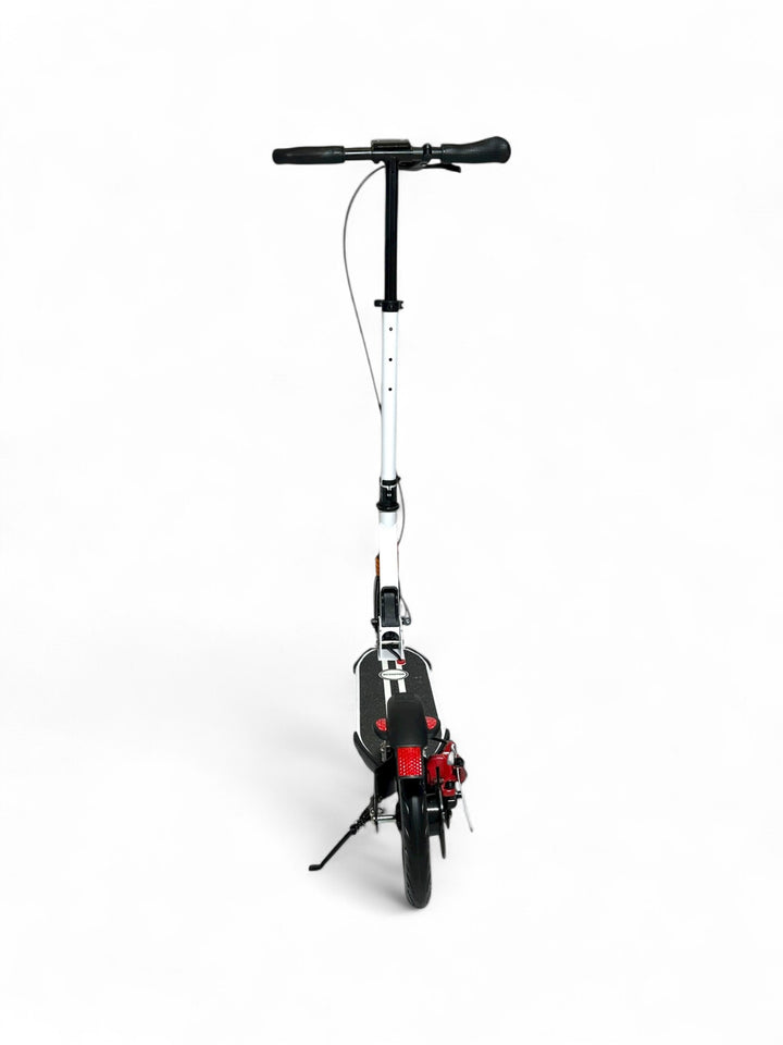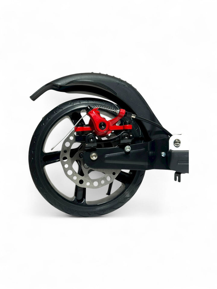 This 2 Wheels Kick Scooter is perfect for kids aged 4 and up who want smooth, comfy rides. Thanks to its big 180mm wheels, it easily glides over bumps and cracks, making every ride faster and more fun. Its sturdy metal frame is super strong yet light, plus it folds up with just one button for easy carrying and storage. The retro-style wide handlebars with rubber grips offer great control and balance, so you feel steady while scooting around. It also features an adjustable handlebar, rear foot brake, mud guards, and a handy kickstand for quick stops.