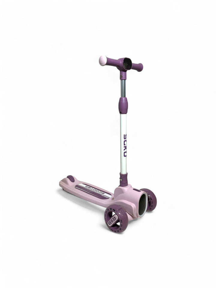 This three-wheeled kick scooter is specially designed for young children, offering enhanced stability for early riders. It supports a rider weight of up to 20 kg, with a pedal capacity of 50 kg. The scooter typically features adjustable handlebars to grow with your child and include LED lights in the wheels or deck for added visibility. Ideal for toddlers 3+aged , it is built with durable materials and an adjustable height mechanism to ensure safety and comfort during use.