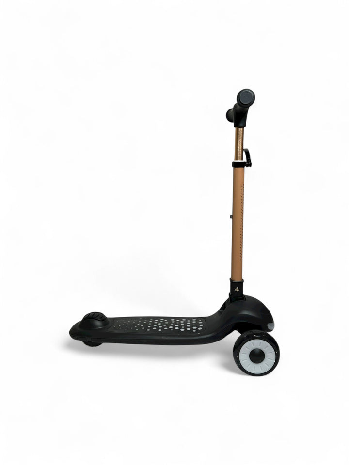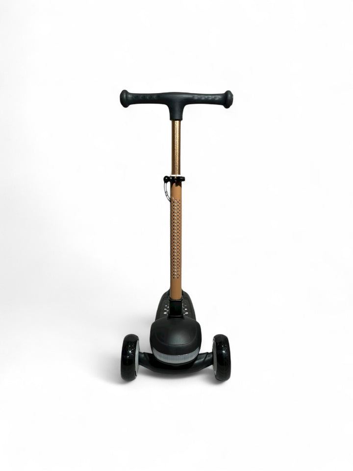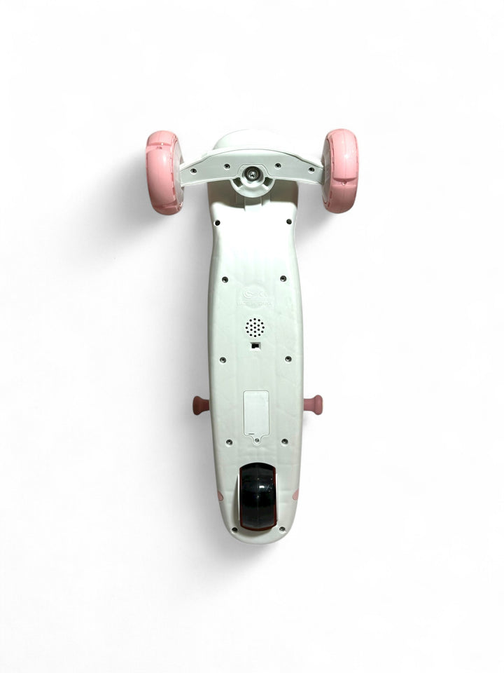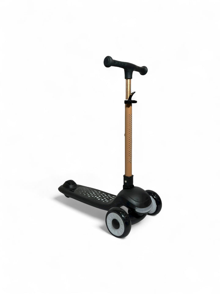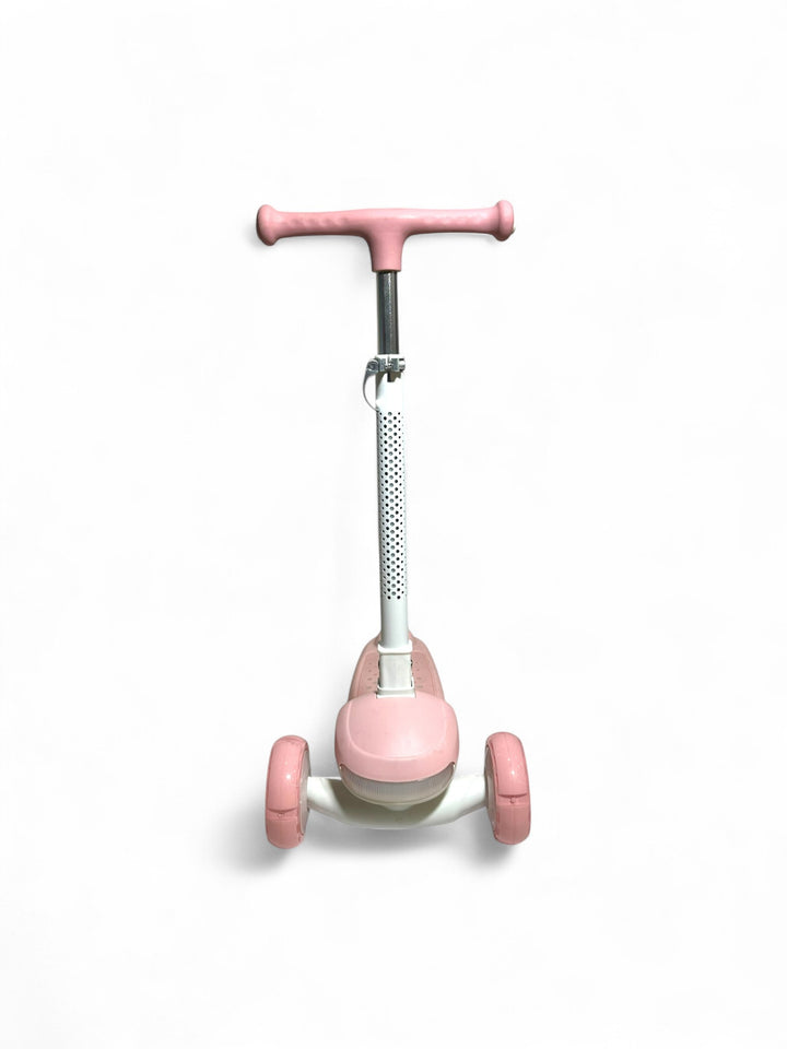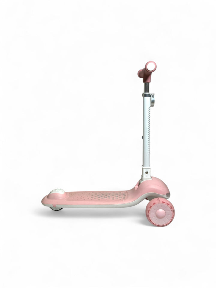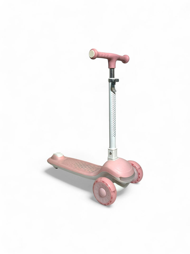 This three-wheeled kick scooter is specially designed for young children, offering enhanced stability for early riders. It supports a rider weight of up to 20 kg, with a pedal capacity of 50 kg. The scooter typically features adjustable handlebars to grow with your child and include LED lights in the wheels or deck for added visibility. Ideal for toddlers 3+aged , it is built with durable materials and an adjustable height mechanism to ensure safety and comfort during use.