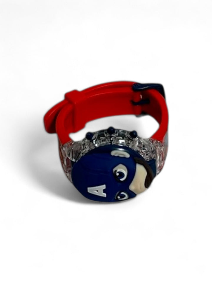 Avengers watch with circle shape with adjustable strap 360 degree rotation and lighting night glow Best quality material, attractive and durable. Comfortable to wear Give your child a watch so that he can Great gift for kids that can help them to read the time and develop a good habit of punctuality Convenient for kids to read time Fashionable, Charming and Comfortable.