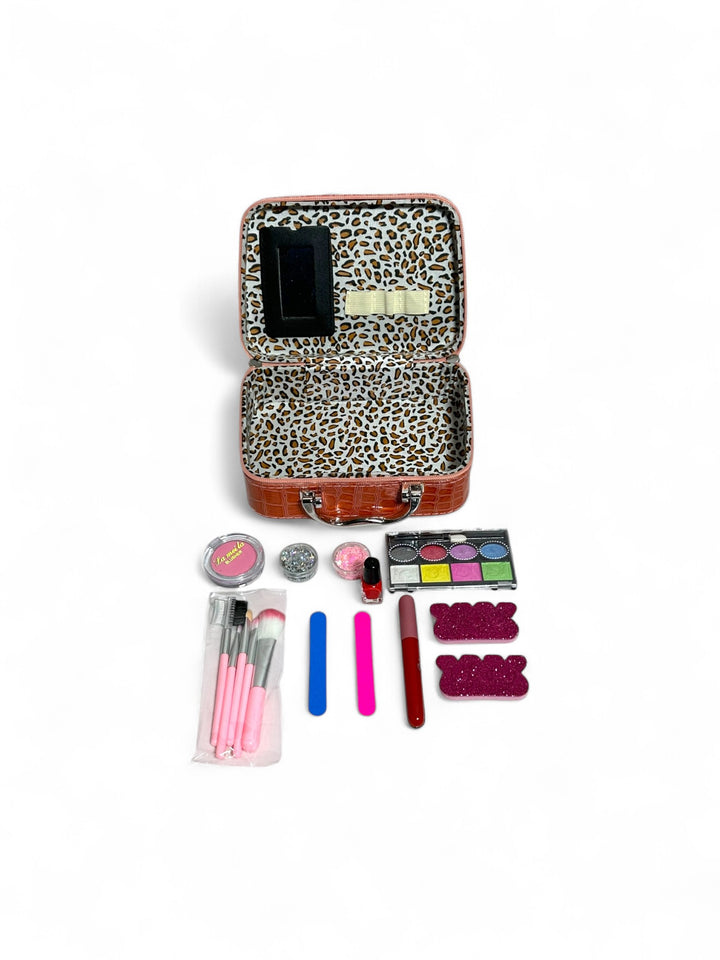 This vanity case is a delightful set complete with everything your little fashionista needs to indulge in the world of beauty and glamour! Whether she's getting ready for an occasion or simply playing dress-up with friends, this set is sure to inspire hours of imaginative fun and excitement Encourage grooming habits and inspire imaginative play This makeup set is perfect for any little fashionista The cart also makes for easy cleanup and storage after playtime, keeping the toys organized and ready for the next time your child wants to play makeup games.