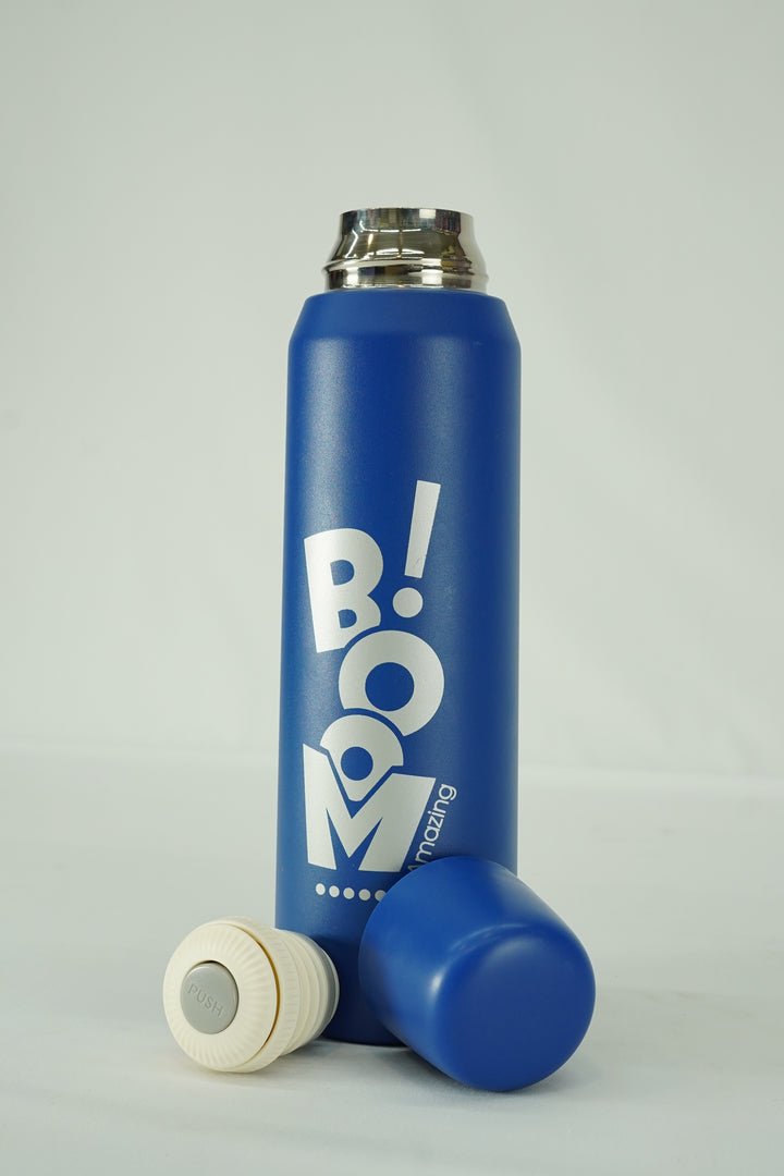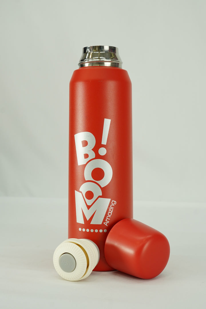 Experience the power of the boom water bottle, made from durable stainless steel. Its stylish design guarantees a leak-free and temperature-controlled experience for 8-12 hours