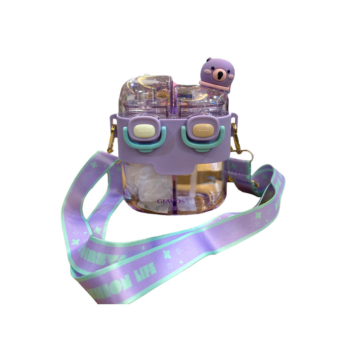 Bunny Water Bottle for Kids with Straw RF12404 Reusable Twin Dual Chamber Design and Push Button Lid BPA Free Kids Water Bottles Leak Proof Easy Clean Cartoons Design Lightweight for School