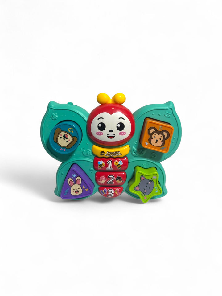 This is a musical toy for babies, often called a "Butterfly Piano" or "Musical Butterfly Toy Early educational musical toy, often featuring a keyboard or buttons that play sounds and melodies. Typically includes animal sounds, songs, and light-up elements to engage infants Designed to aid in developing hand-eye coordination, hearing, and color recognition.