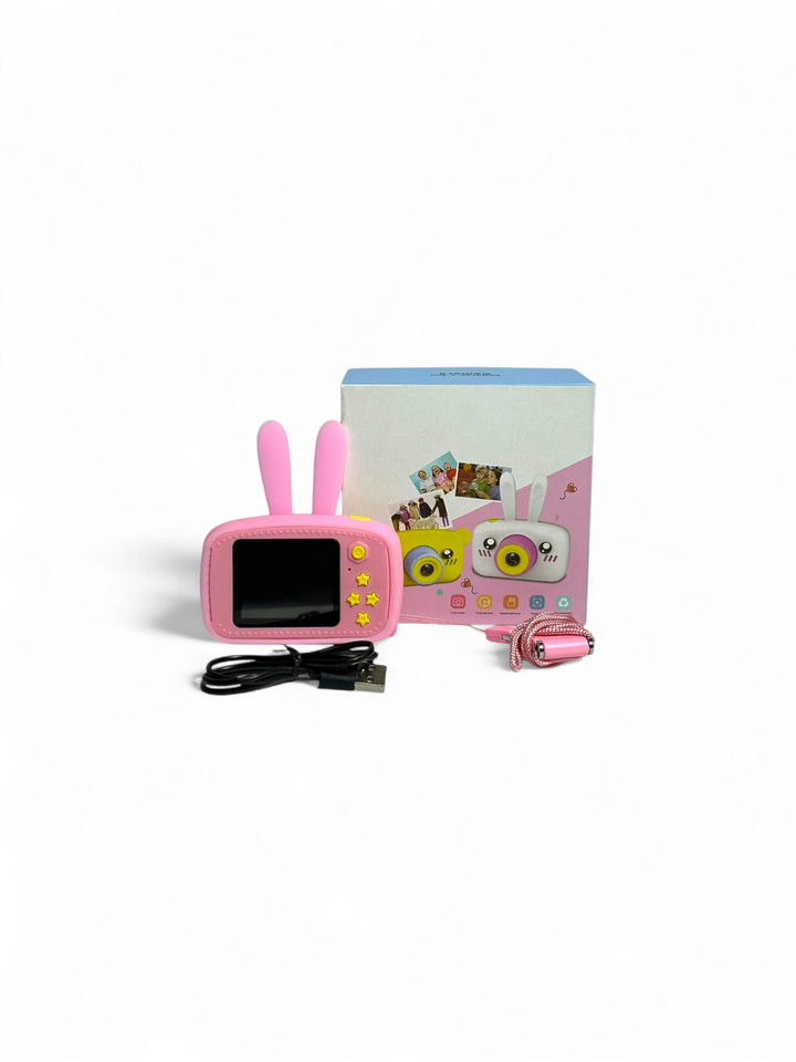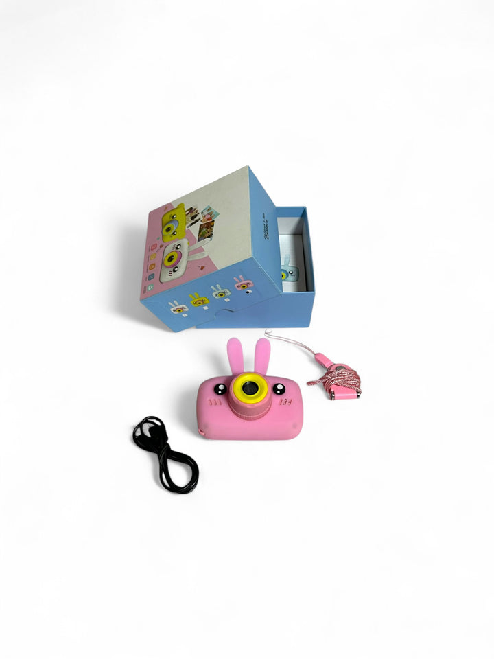 This is a kids fun camera also known as a kids digital camera packaged in a pink and white box. This type of camera is designed for kids often featuring a durable build, simple controls The camera in the image is a child-friendly digital camera. Search results suggest it might have features like HD photography and video