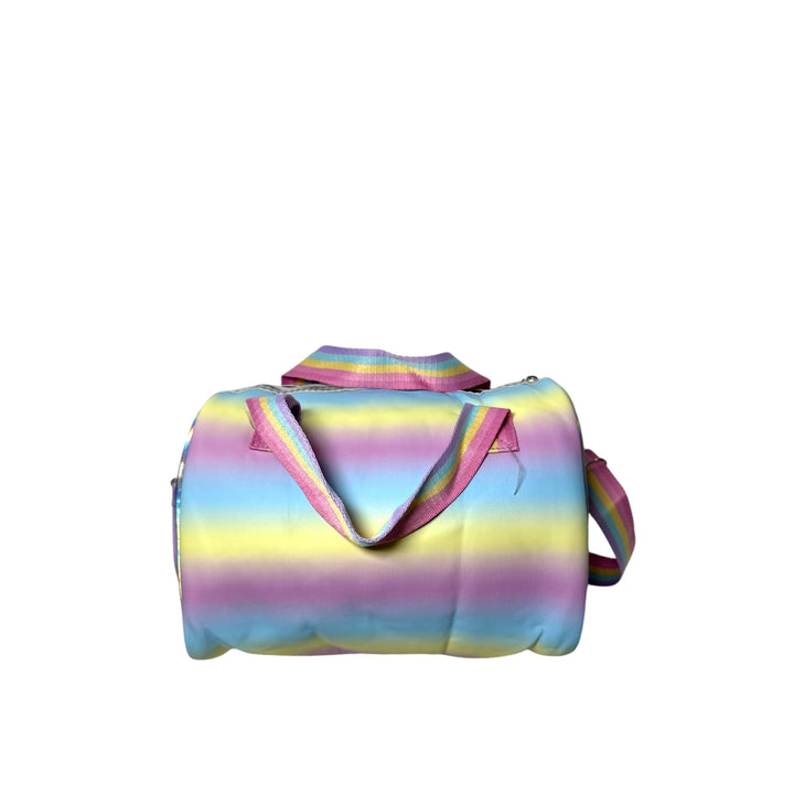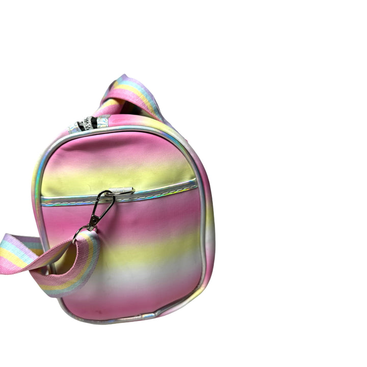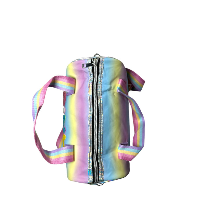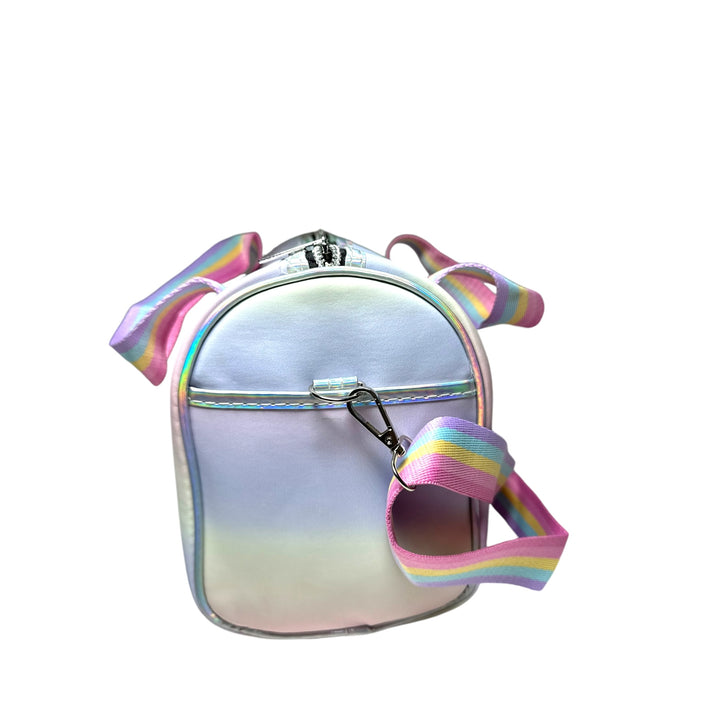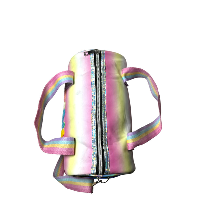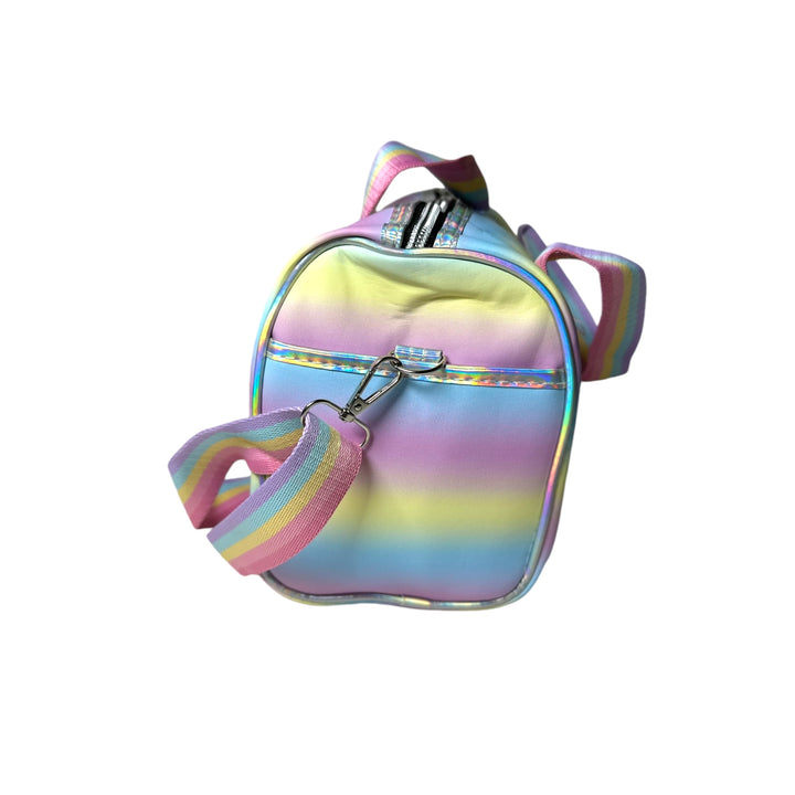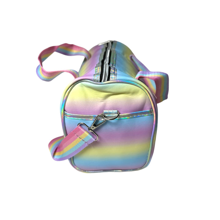 Transform any outfit with the mesmerizing holographic design of this duffle bag! Perfect for school, outings, parties, or any occasion that calls for a touch of glamour. Designed with the ideal dimensions for young trendsetters, this bag is both stylish and versatile. Add a hint of sparkle to your wardrobe and make a statement with this holographic duffle bag.