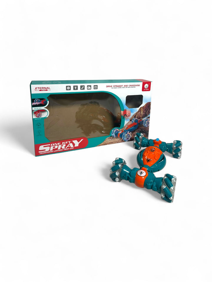 This a "Eternal Spray Transverse Lantern Twist Car," a remote-controlled stunt car with various features. It offers two control modes, via...