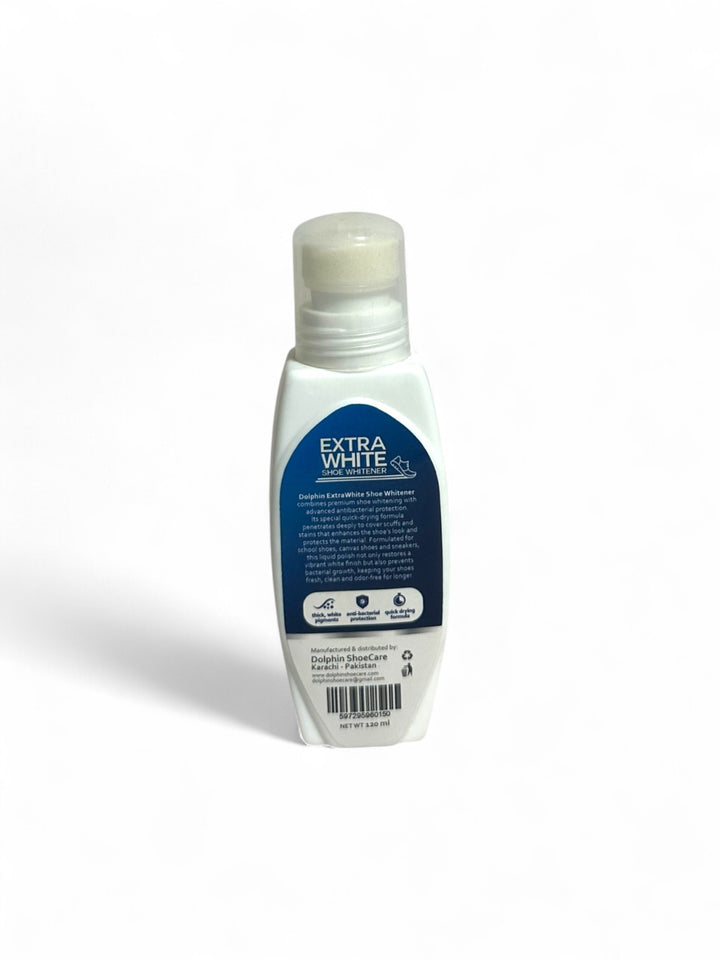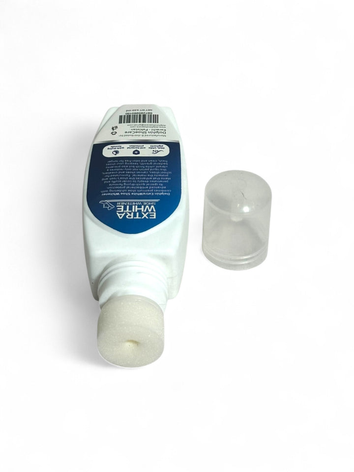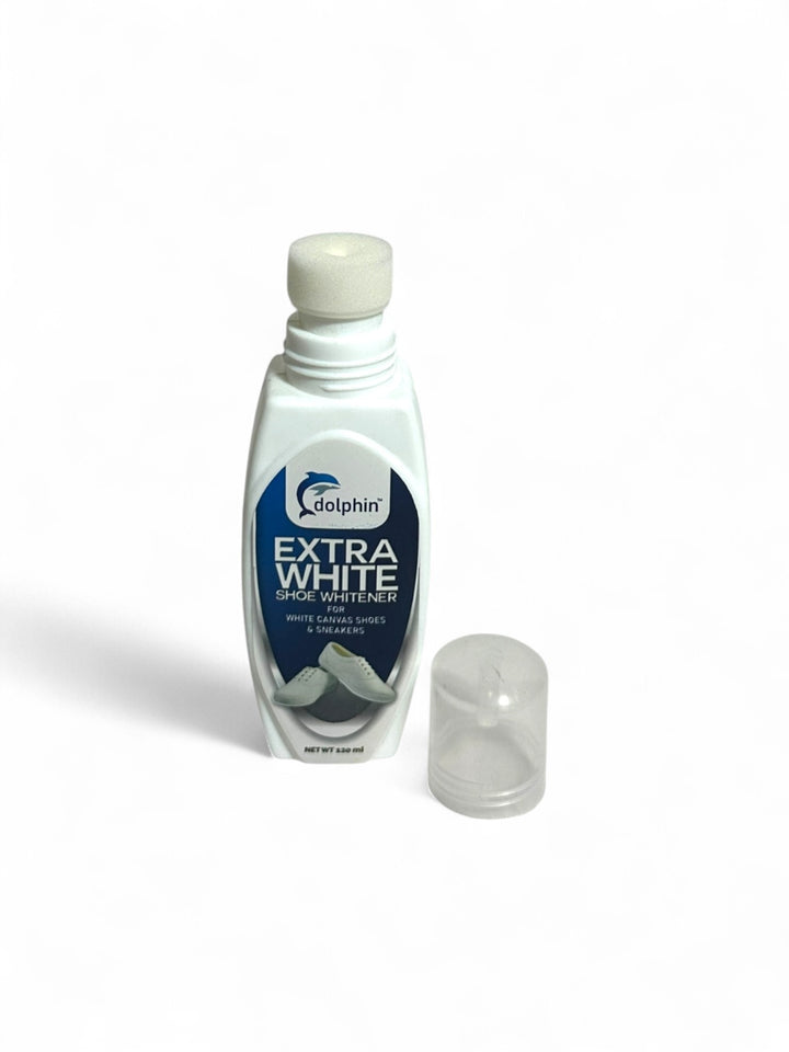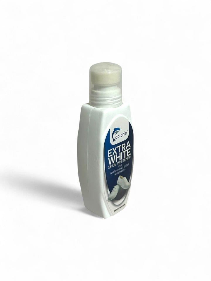This is a Extra White Shoe Whitener by Dolphin It is a shoe whitener for white canvas shoes and sneakers. The formula contains advanced polymers and whitening agents to restore whiteness to leather, vinyl, and canvas footwear. It is designed to cover scuffs, stains, and discoloration. It is formulated with a quick-drying formula and an anti-bacterial agent to prevent odor.