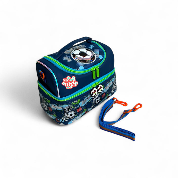 This Football Lunchbox Bag By Vest is a premium quality Thermal Double Partitioned Lunch Bags for Boys Keep your food and liquids hot or cold for 6-8 hours while also enjoying its waterproof and washable features.