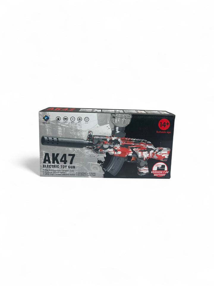 This is a AK 47 Fully Automatic Gel Blaster, a toy gun that uses water-based gel balls Fully Automatic Gel Blaster (AK 47). Electric operation, high-speed automatic firing, designed for outdoor play Uses soft water beads (gel balls) and it is suitable for ages 14+