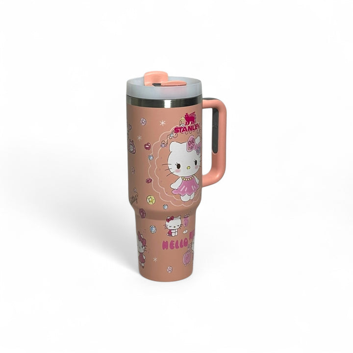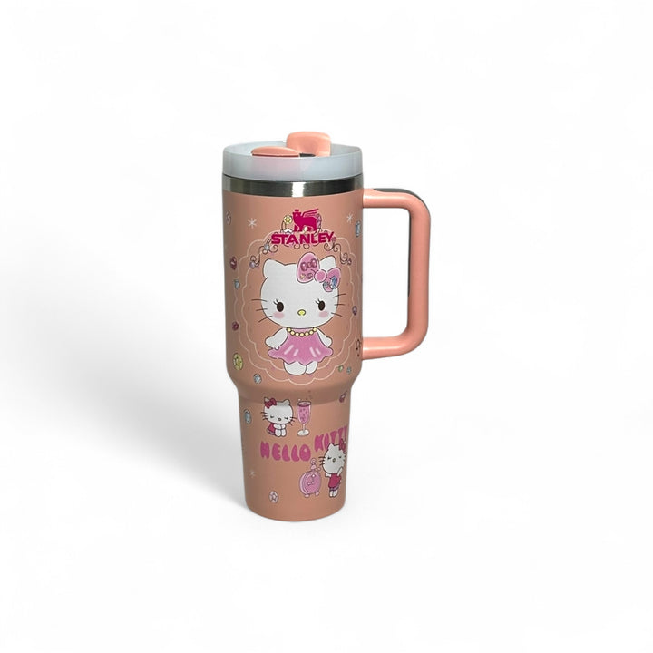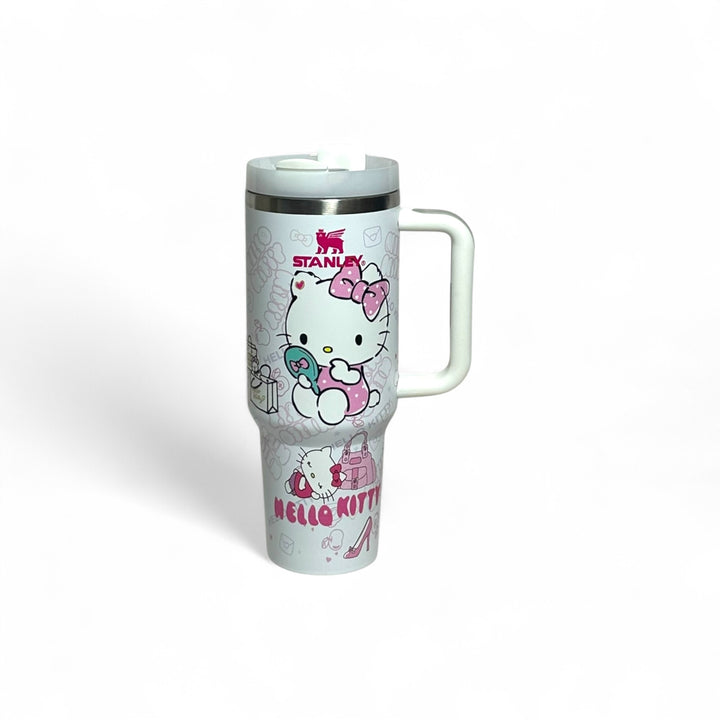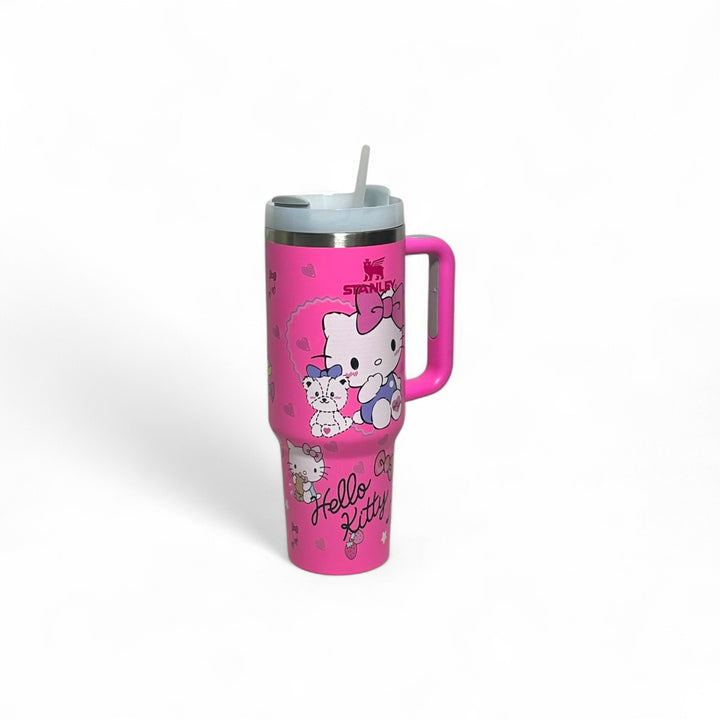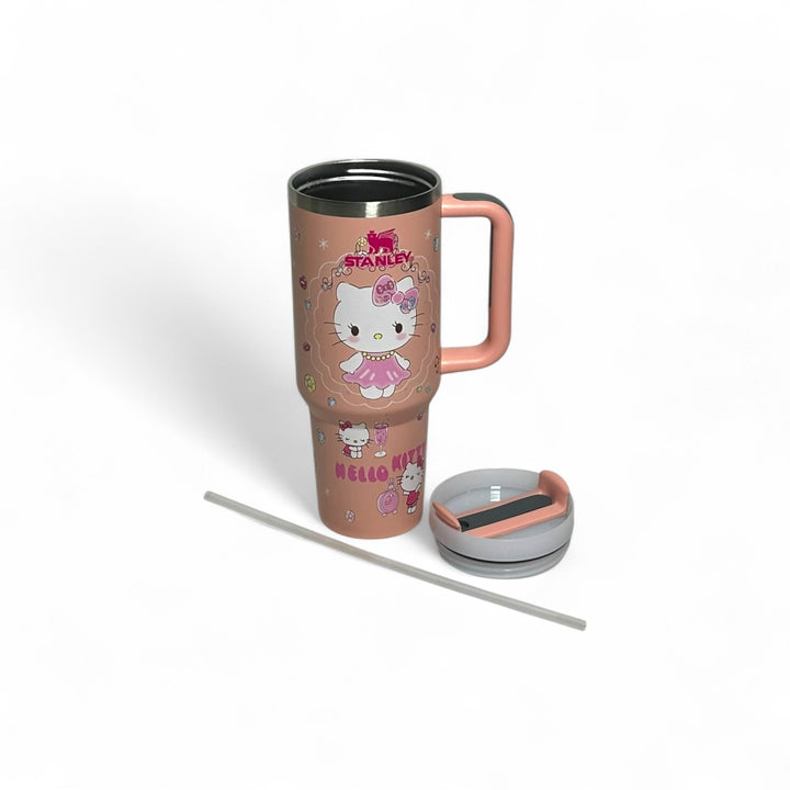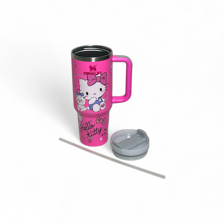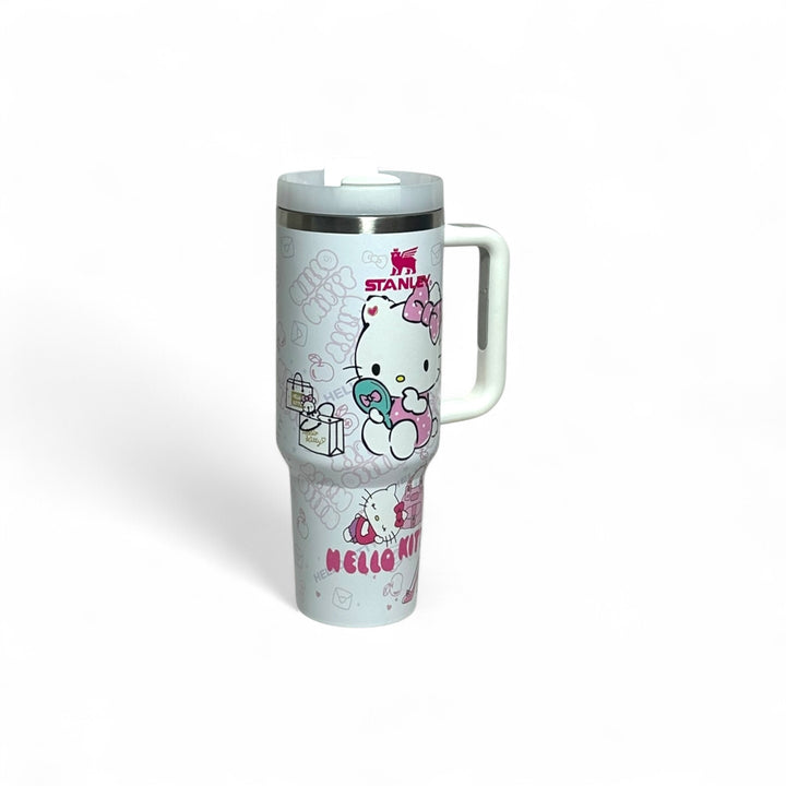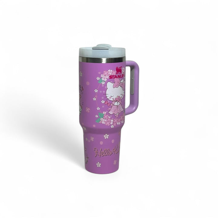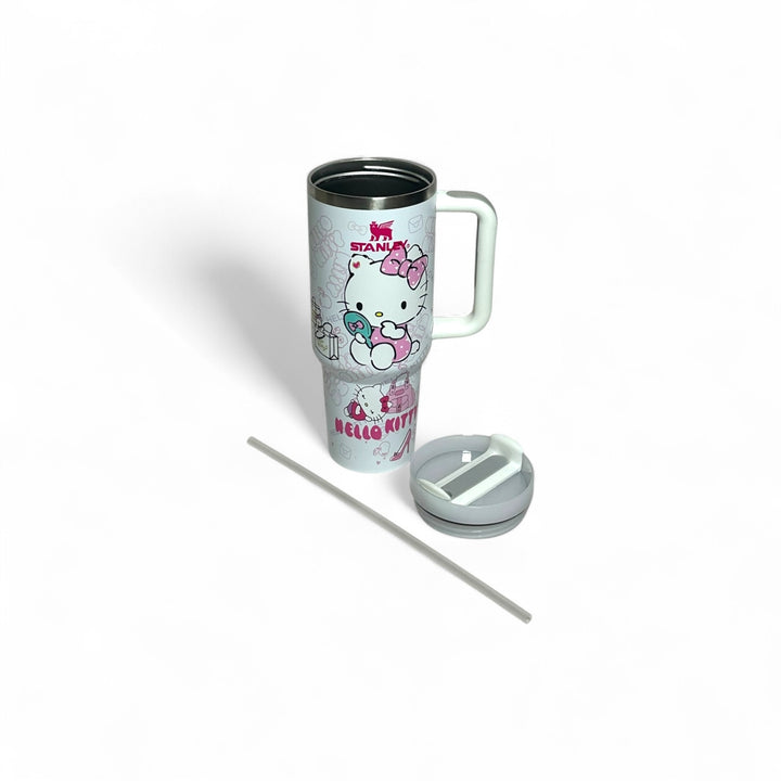 This Hello Kitty Stanley Flowstate Tumbler 1.18L is Crafted from 18.8 stainless steel and boasting a BPA-free design, this tumbler features a double wall vacuum insulator and a 3-position lid for maximum performance. Enjoy a splash-proof design, a reusable straw, and a dishwasher safe cap for easy cleaning. Plus, its cap cut holder is compatible with most cup holders, making it perfect for on-the-go use. Elevate your beverage experience with the Stanley Flow state Tumbler 1.18L