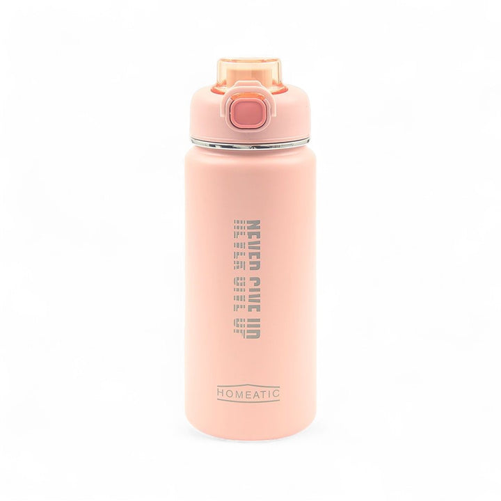 This homeatic water bottle boasts a stylish design and exceptional quality. Keep your drinks cold for up to 7 hours with this premium 750ML stainless steel bottle.