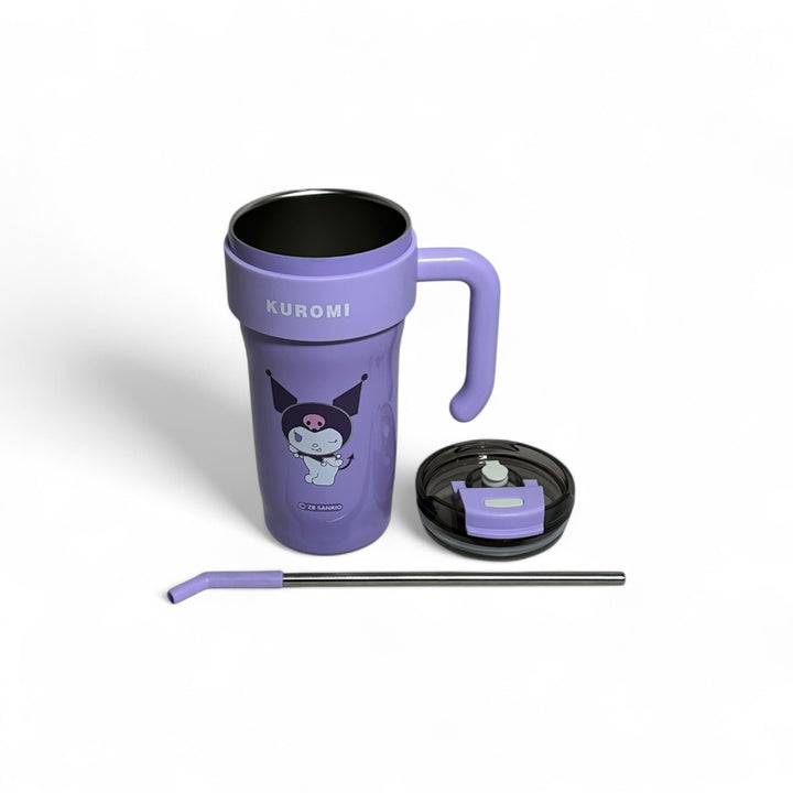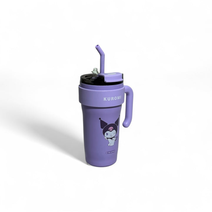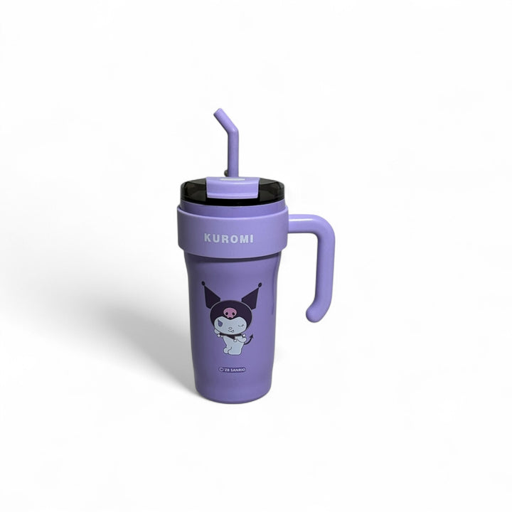 Stay refreshed with this playful kuromi stainless steel tumbler, complete with a handy handle and straw. Its vacuum-insulated, double-wall design keeps your drinks perfectly hot or cold, and the generous 860 mL