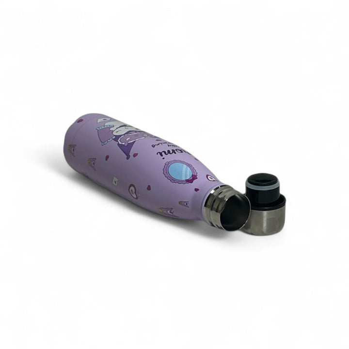 Experience the power of the Kuromi Stainless Steel water bottle, made from durable stainless steel. Its stylish design guarantees a leak-free and temperature-controlled experience for 4-5 hours