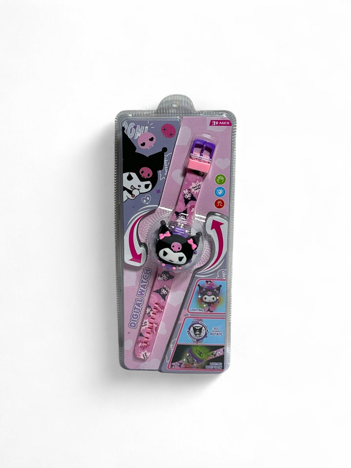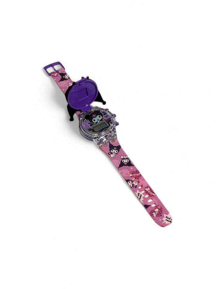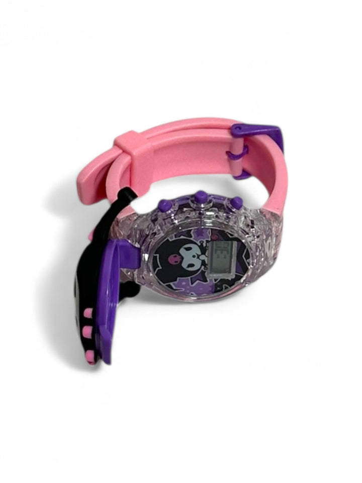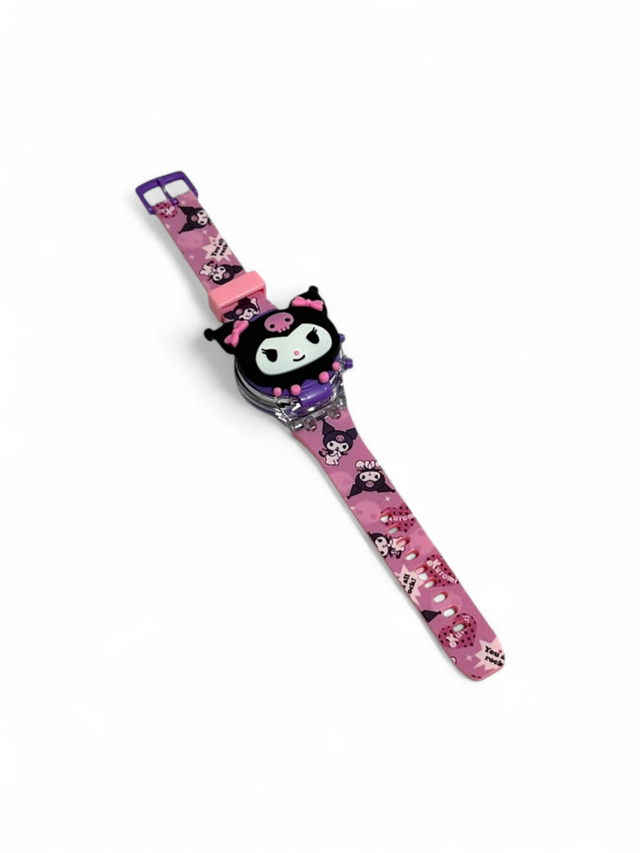 Kuromi watch with circle shape with adjustable strap 360 degree rotation and lighting night glow Best quality material, attractive and durable. Comfortable to wear Give your child a watch so that he can Great gift for kids that can help them to read the time and develop a good habit of punctuality Convenient for kids to read time Fashionable, Charming and Comfortable.