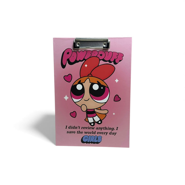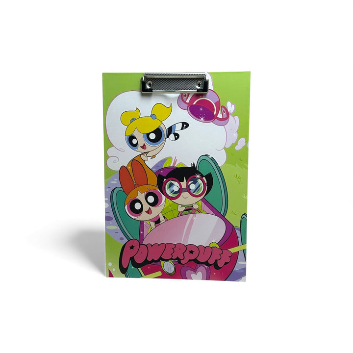 This is a Powerpuff Girls-Themed clipboard also known as an exam board or paper board, used for holding paper with a clip The clipboard is designed to be lightweight, and provide a smooth writing surface.