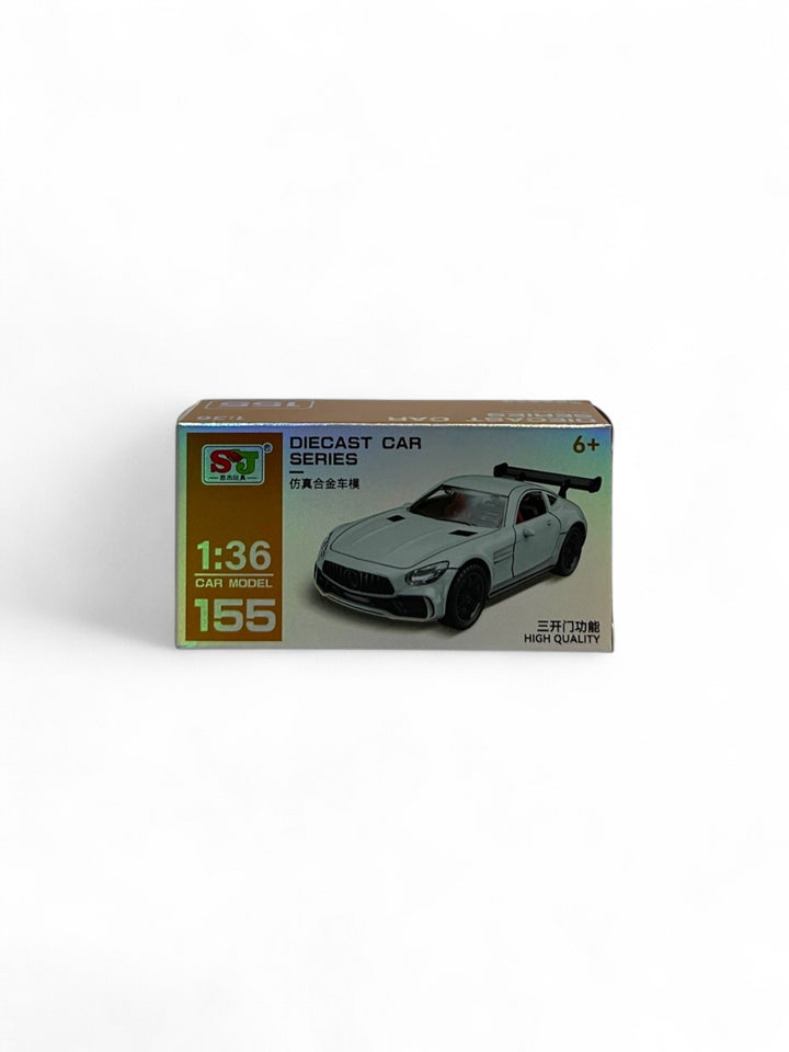 This 1:36 scale mini die-cast model car of a Mercedes-Benz AMG GT is part of the "Diecast Car Series." Designed with a shiny finish, it’s perfect for kids aged 6 and older. Plus, it has three doors that open for extra fun and realistic play!