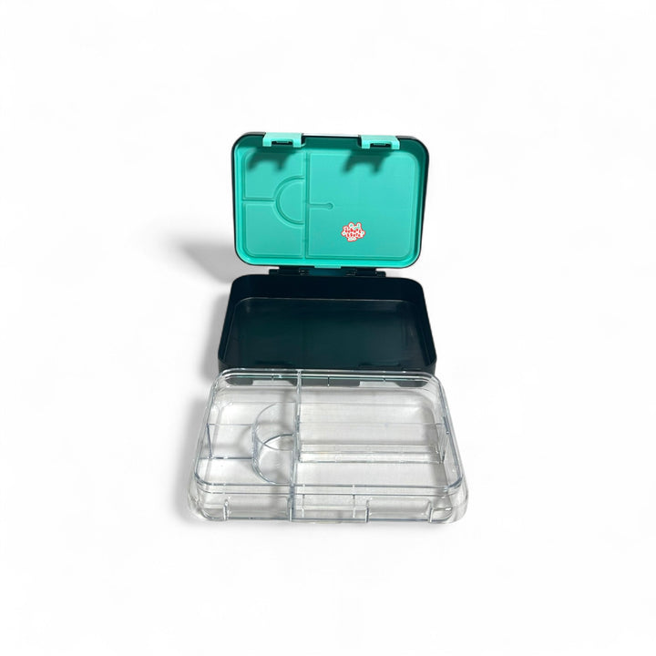 - Removable divider that provides additional sub-compartments (not leak proof)