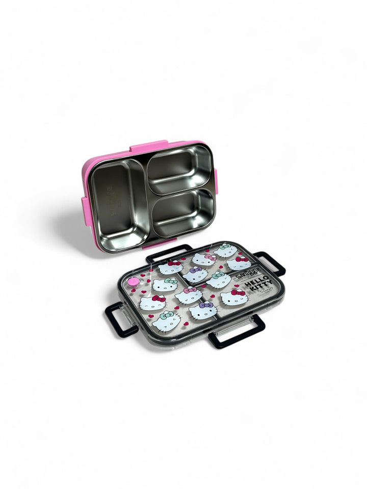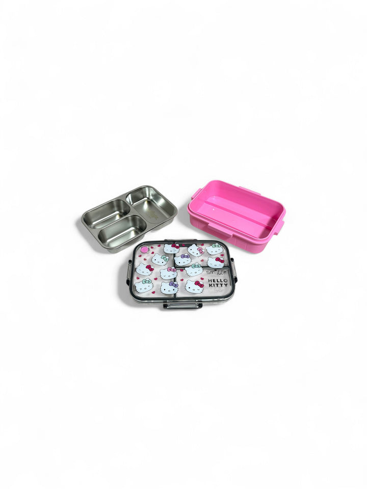 Our Original Smiggle Hello Kitty 750ML trio large stainless steel Lunchbox. Featuring 3 sealed compartments, this reusable design keeps food fresh and leak-proof.