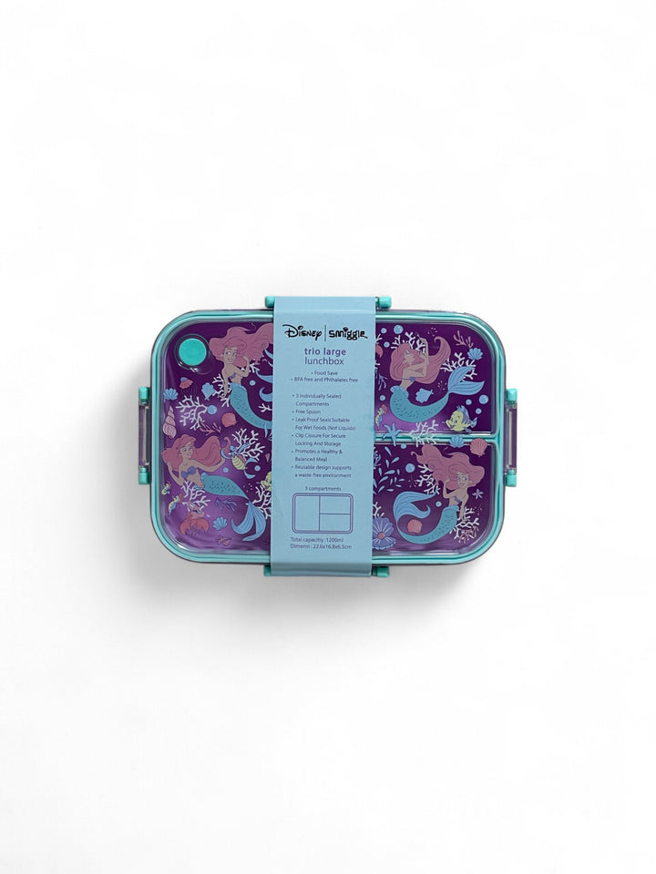 Our Original Smiggle Mermaid trio large Lunchbox. Featuring 3 sealed compartments, this reusable design keeps food fresh and leak-proof.