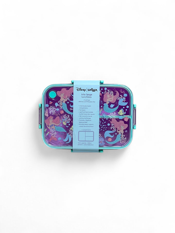 Our Original Smiggle Mermaid trio large Lunchbox. Featuring 3 sealed compartments, this reusable design keeps food fresh and leak-proof.