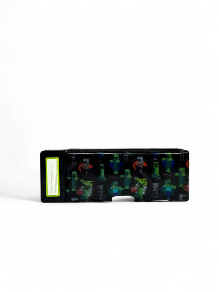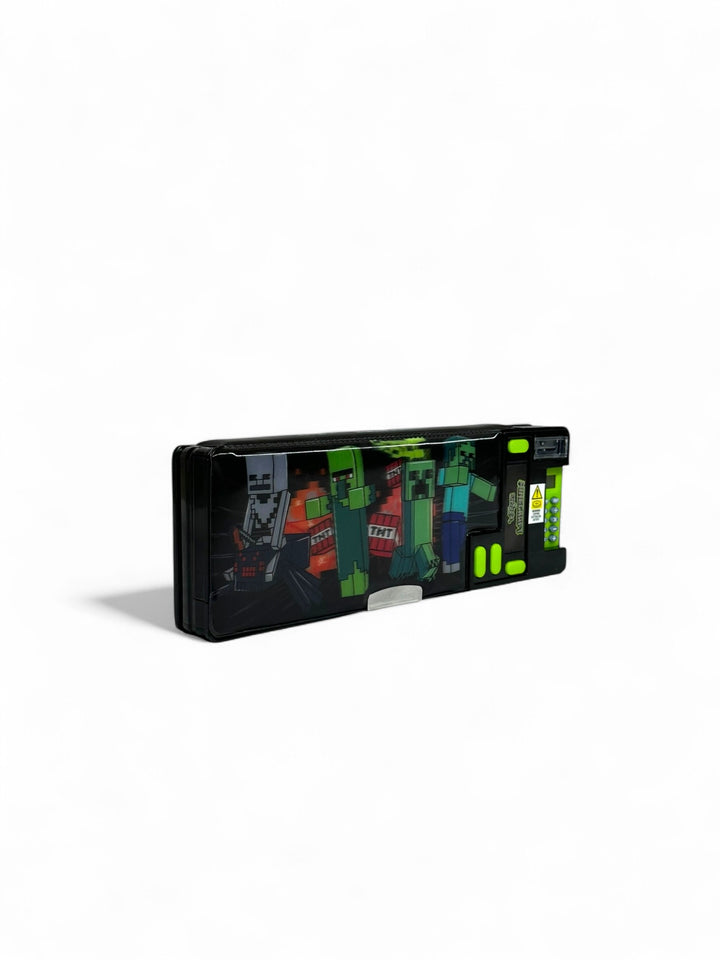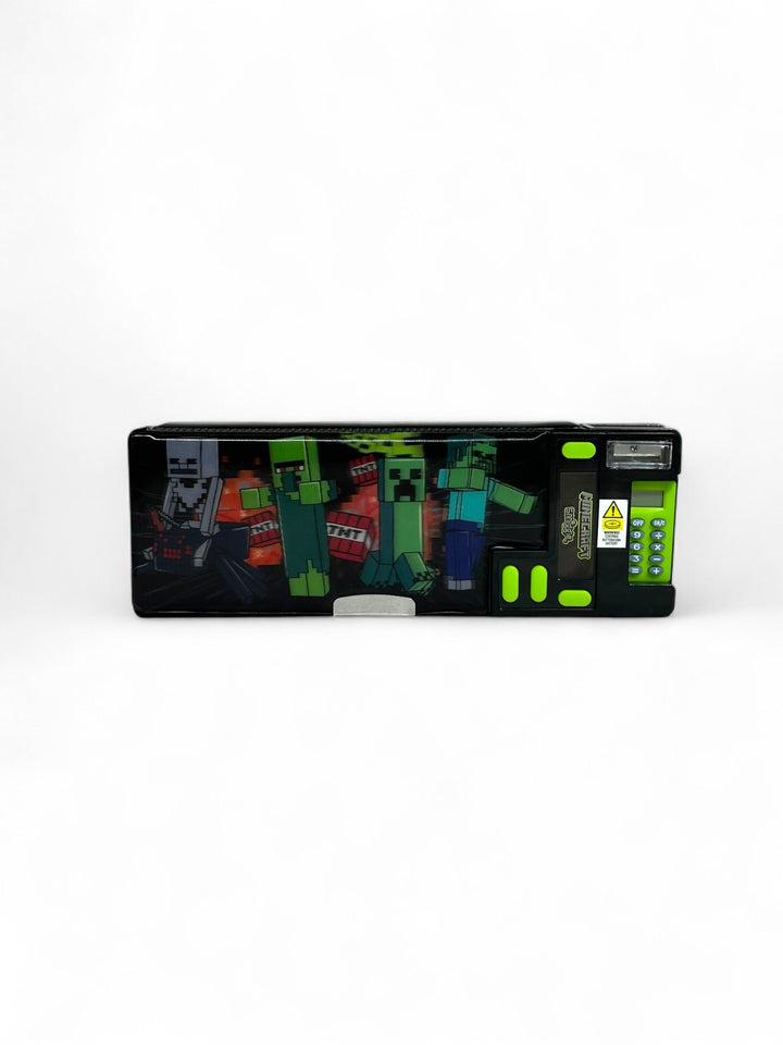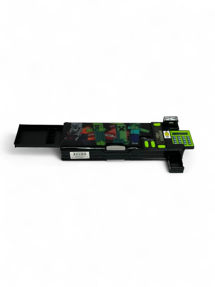 Introducing our Minecraft Pop Out Pencil Case Our Pop Out Pencil Case features pop out compartments that reveal hidden stationery including a calculator, sharpener and more! Plus, stacks of space to keep stationery hidden from pesky villains. Check out the lenticular, Minecraft panel that shifts between designs!