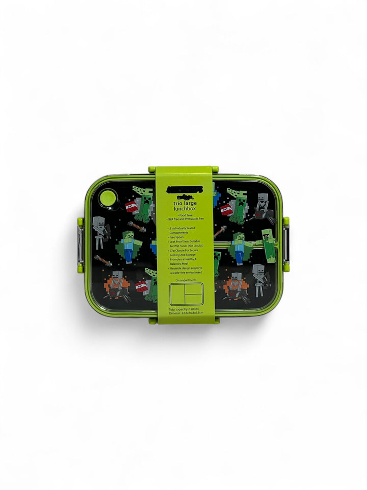 Our Original Smiggle Minecraft trio large Lunchbox. Featuring 3 sealed compartments, this reusable design keeps food fresh and leak-proof.