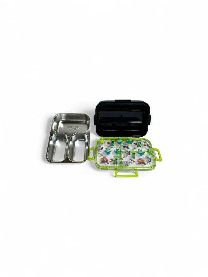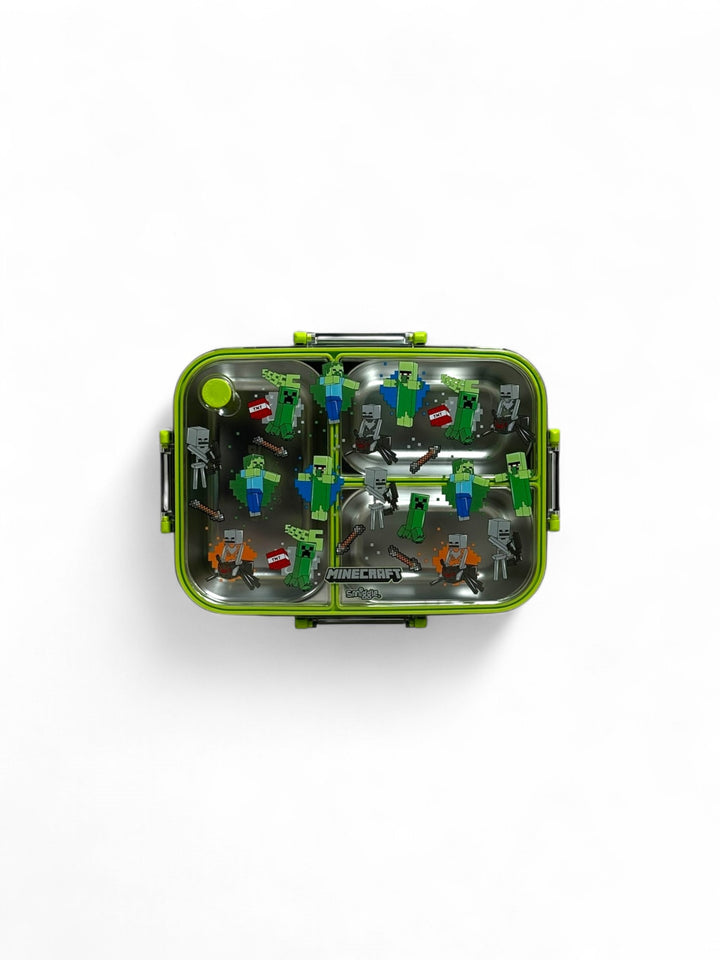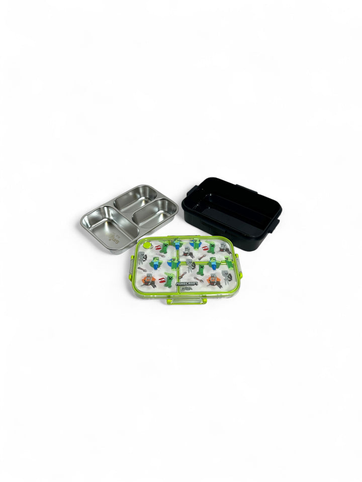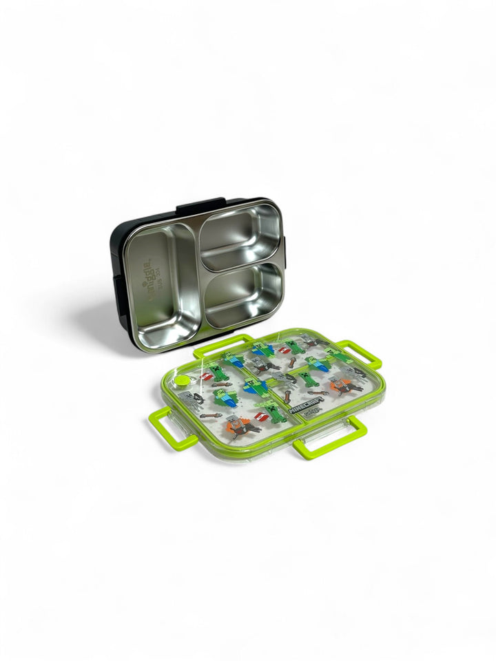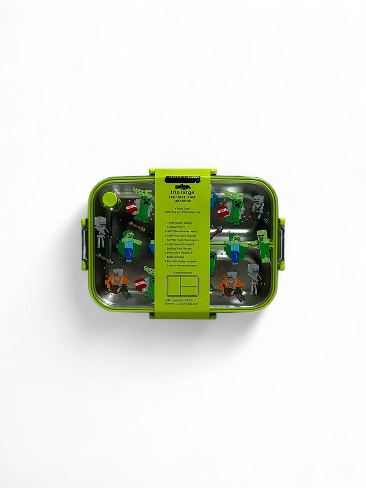 Our Original Smiggle Minecraft 750ML trio large stainless steel Lunchbox. Featuring 3 sealed compartments, this reusable design keeps food fresh and leak-proof.