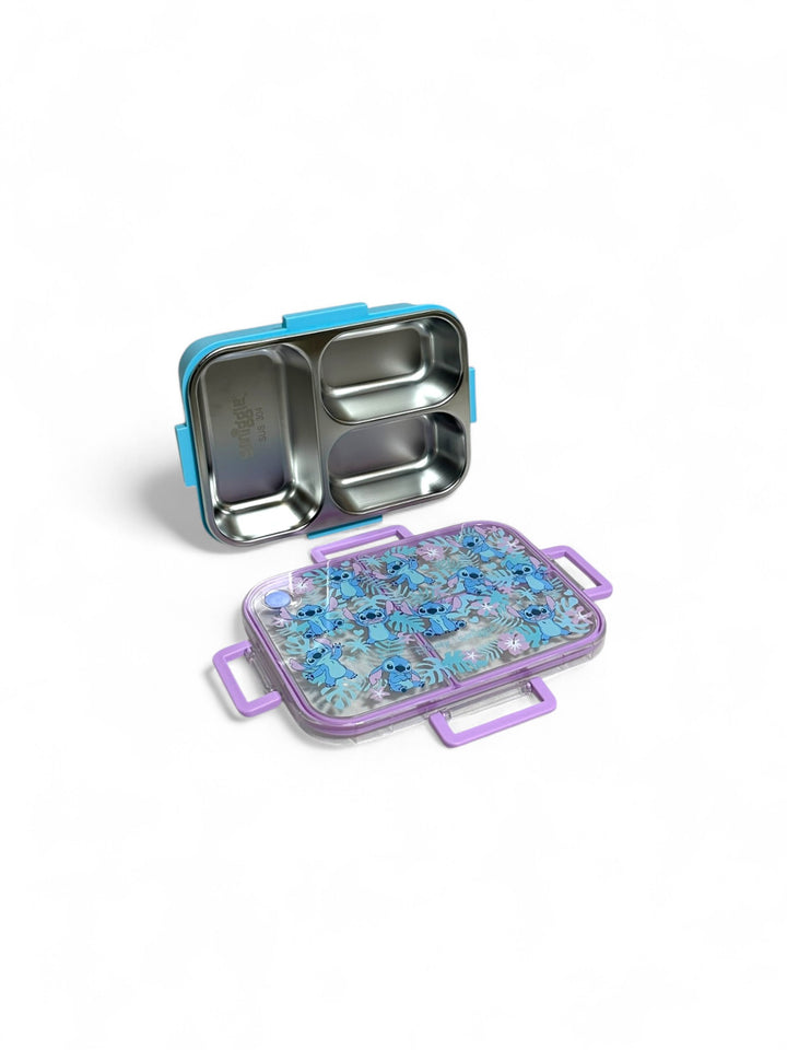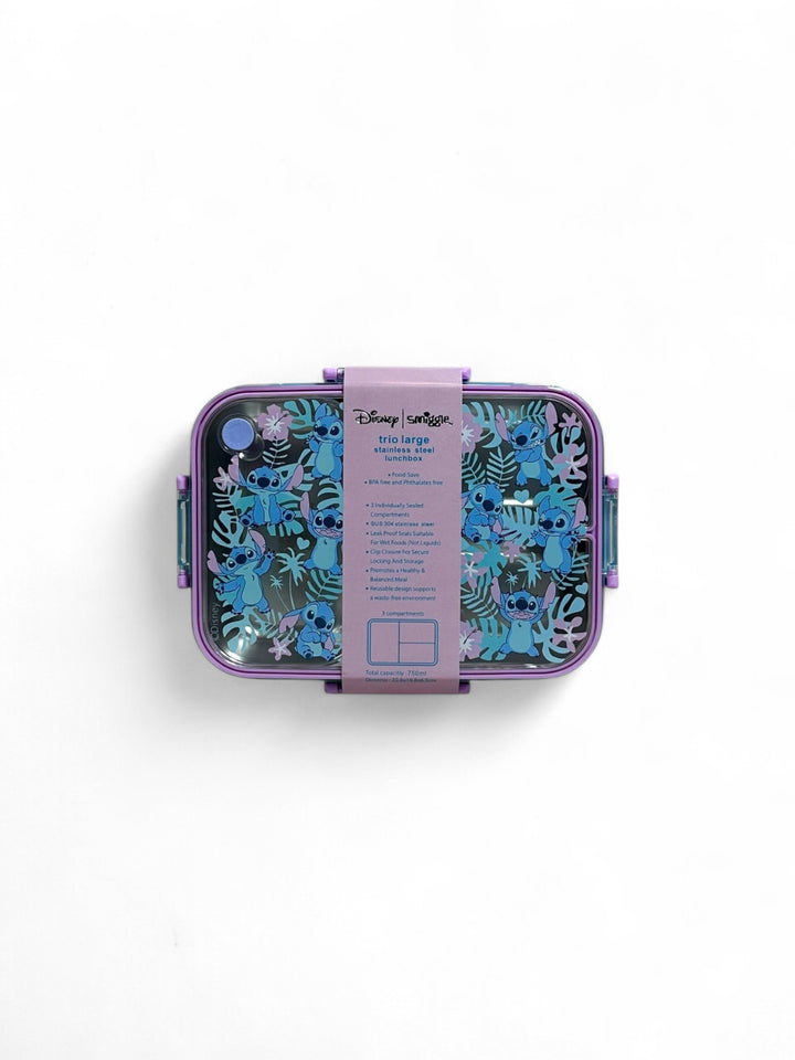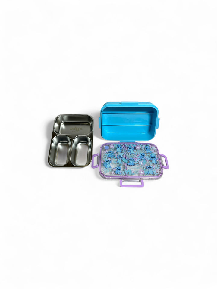 Our Original Smiggle Stitch 750ML trio large stainless steel Lunchbox. Featuring 3 sealed compartments, this reusable design keeps food fresh and leak-proof.