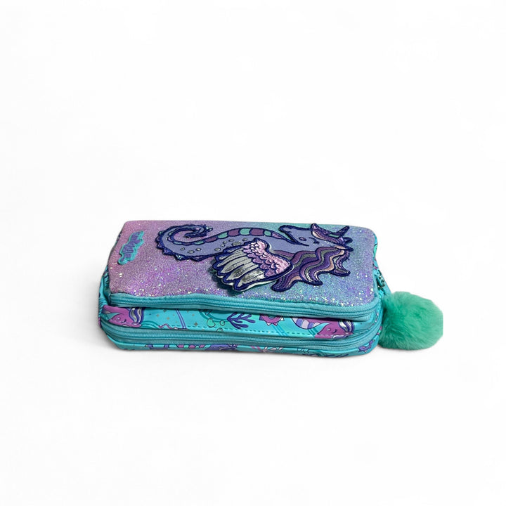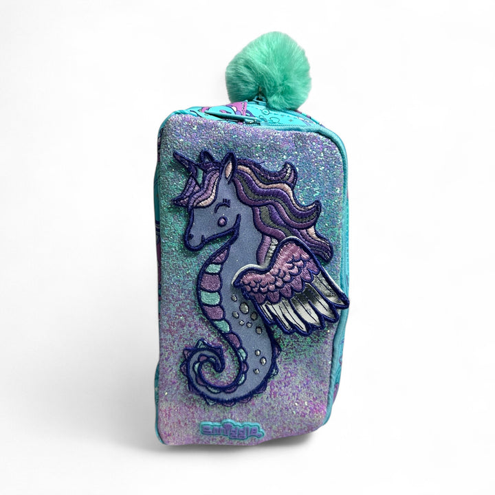 Experience the ultimate in quality and style with our brand new Smiggles unicorn Pencil Pouch! This pouch features a water-resistant design and is equipped with 2 main zips , making it perfect for kids.