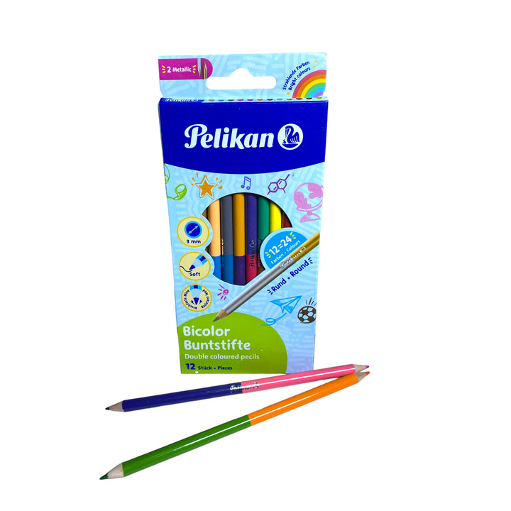 Coloured pencils 12 duo with 24 colours by Pelikan guarantee a smooth appliance and their varnish corresponds with the colour of the lead.