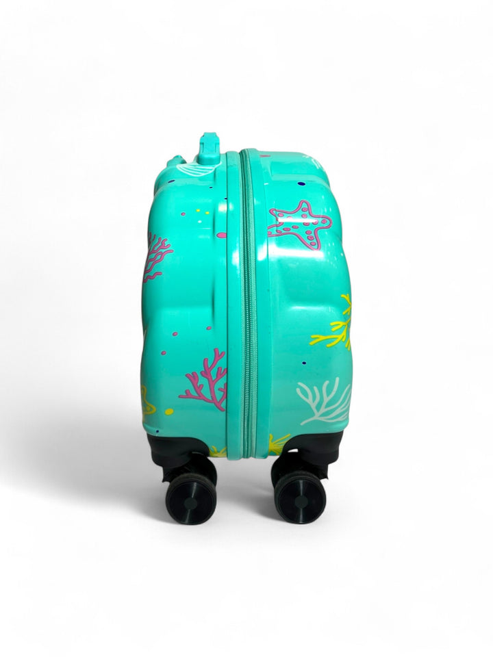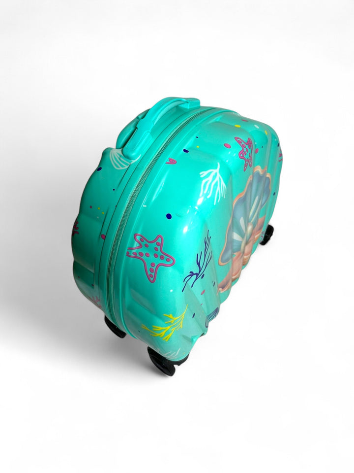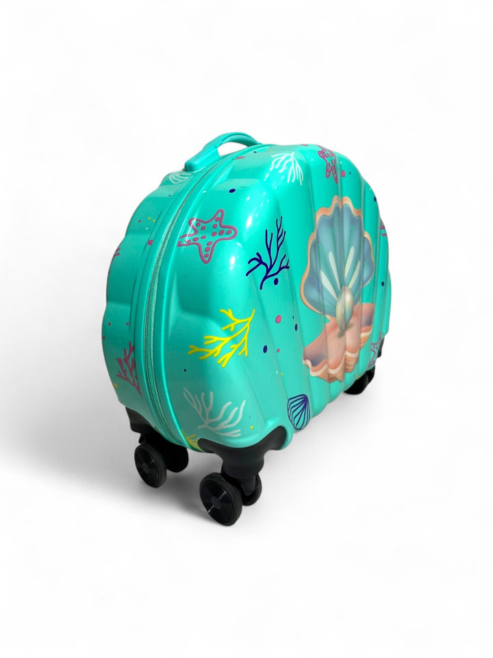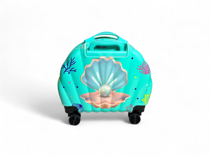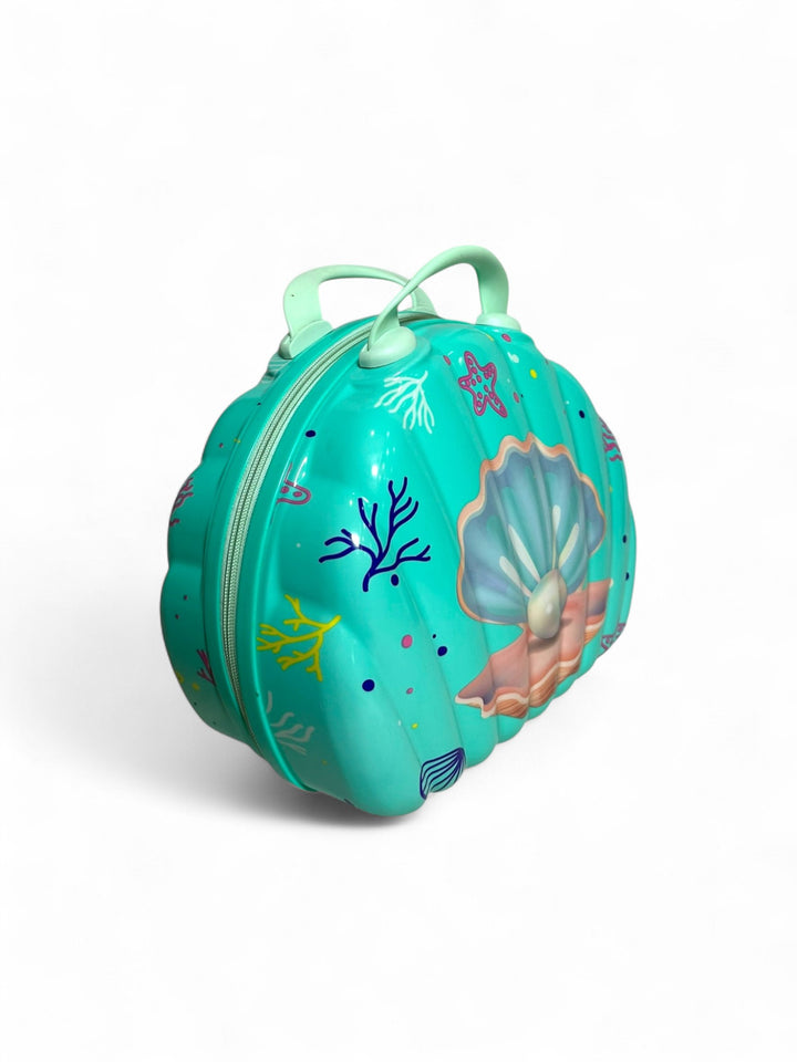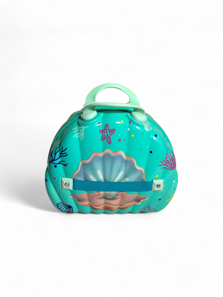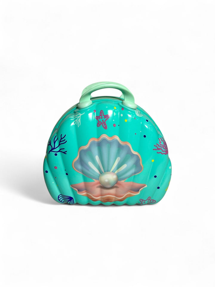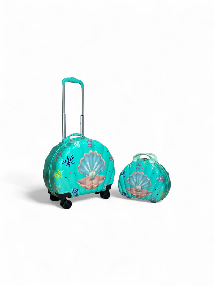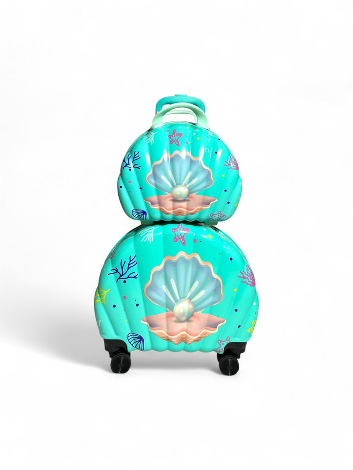 Make travel fun and easy with the Mermaid Sea Shell Luggage Set This cute two-piece set includes luggage and a matching vanity bag, both featuring a lovable sea shell design your child will adore. Made from durable, waterproof, and scratch-resistant material, it protects belongings while staying lightweight for little travelers. The luggage glides smoothly on 360° silent wheels with a telescopic handle, and the vanity bag keeps accessories or small essentials neatly organized. Perfect for stylish adventures