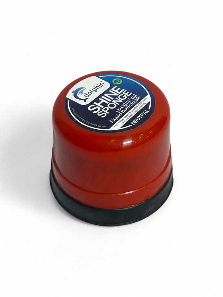 This is a Shine Sponge By Dolphin which is a type of instant shoe shiner with extra 8ML liquid bottle inside It is a neutral colored sponge designed to provide a quick shine to leather shoes and other leather items It is used to give a long-lasting shine and protection to leather, while also making it water-repellent